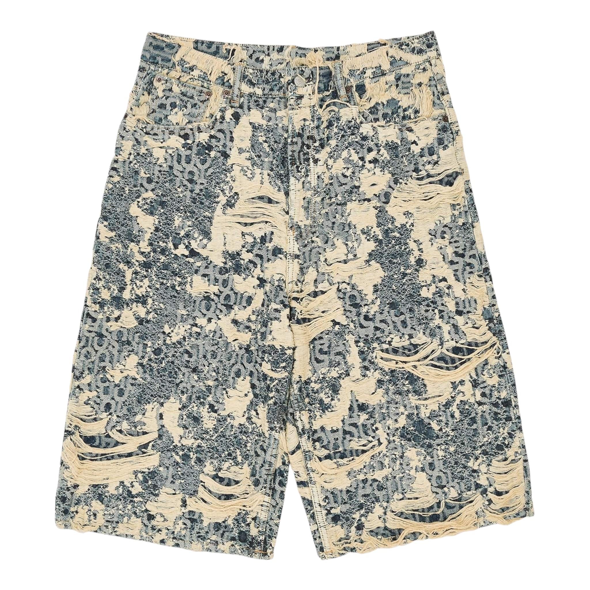 Acne Studios Judda Jaquard Distressed Denim Shorts Mid Blue