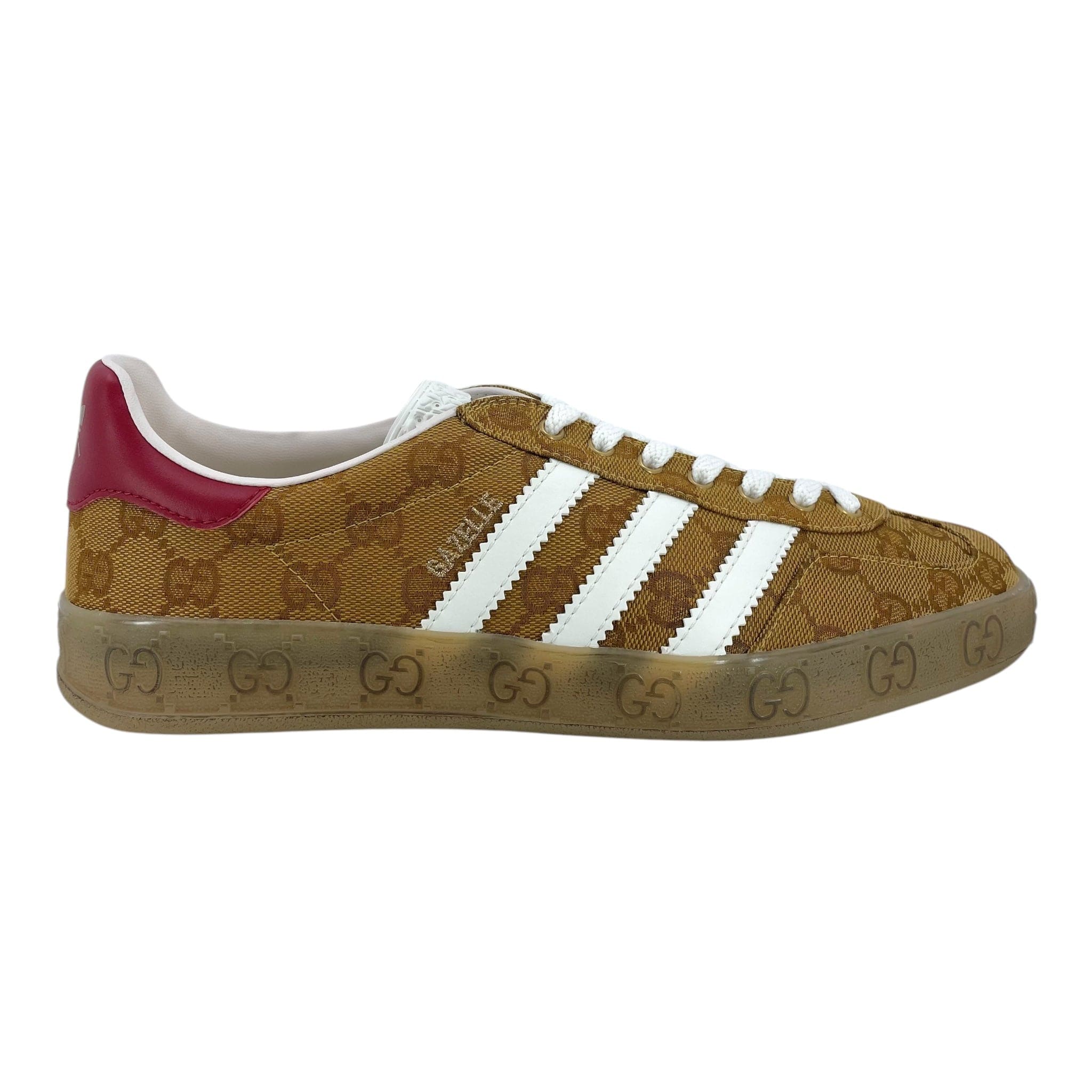 adidas and Gucci teamed up to release a collaborative collection filled with apparel, footwear, and accessories in 2022. The adidas Gazelle Gucci Original GG Beige Brown was one of the shoes to come out of this collection.