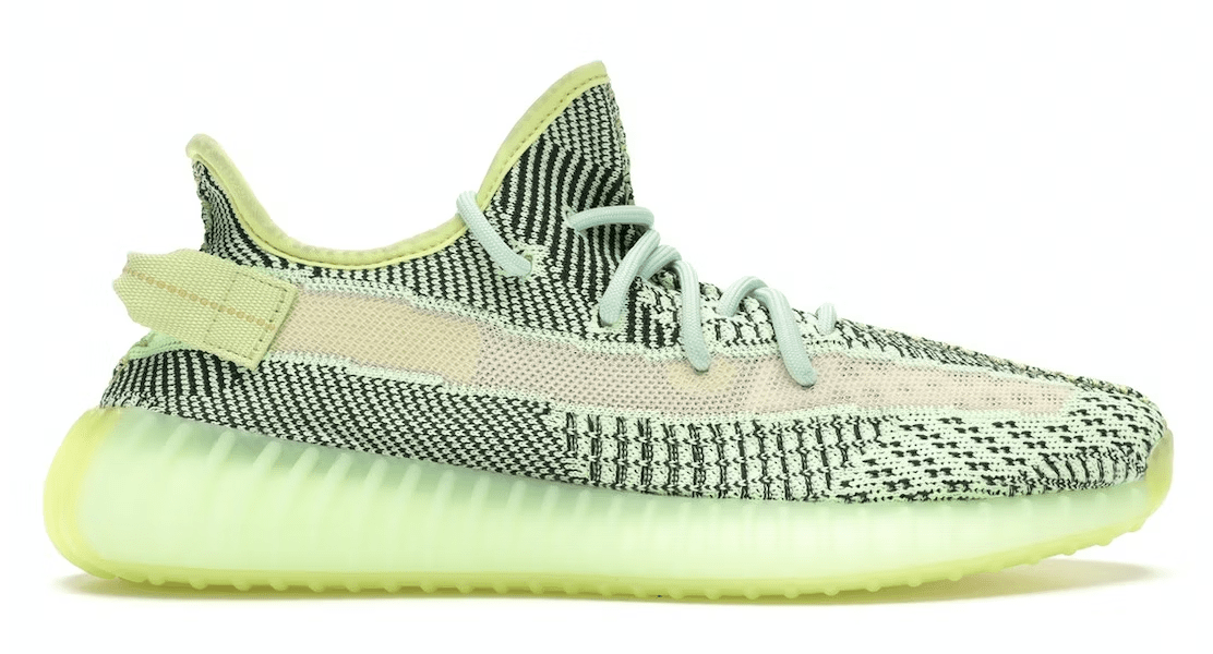 This Yeezy 350 V2 is composed of a Yeezreel upper and with black and grey accents ingrained in the upper. A translucent Yeezreel Boost cushioned sole and side stripe completes the design. These sneakers released in December of 2019 and retailed for $250.