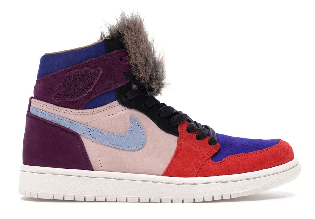 Aleali May teams up with Jordan again to produce the women's Jordan 1 Retro High Aleali May Court Lux (W). This AJ1 is sporting a multi-color upper, blue Nike "Swoosh", white midsole, and white sole. This sneaker released in December 2018 and retailed for $160.