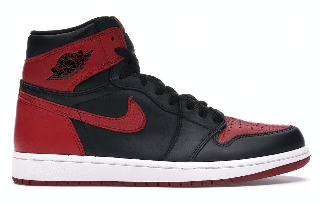 The shoe that started it all. In 1985, Nike partnered with a young superstar in the making, Michael Jordan, and changed the game by releasing the Air Jordan, now known as the Air Jordan 1. It was rumored that this black and red colorway was banned by the NBA for violating the league's dress code, leading to the shoe's reputation as the banned Jordans. While this story was most likely a marketing move on Nike's part as it has never been confirmed, the legend of the Air Jordan 1 Bred lives on.