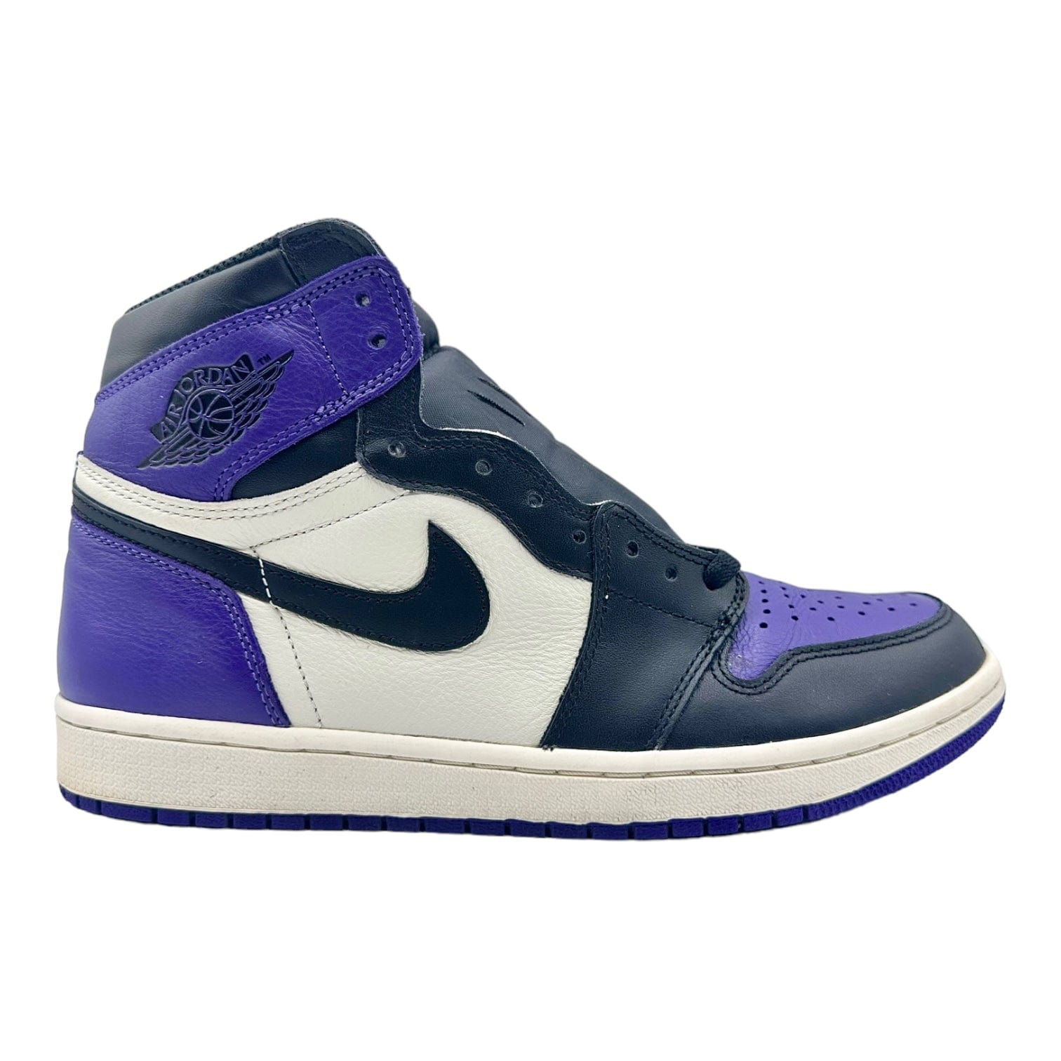What screams both royalty and NBA’s rookie of year in 1985? The Air Jordan 1 Retro High Court Purple. Showcasing a magical splash of color, these shoes have a leather upper in black, sail, and court purple. Showing similarities with the "Bred Toe", the Air Jordan 1 Retro has a black "Swoosh" with a white midsole and court purple sole. This silhouette released in September 2018 and retailed at $160.