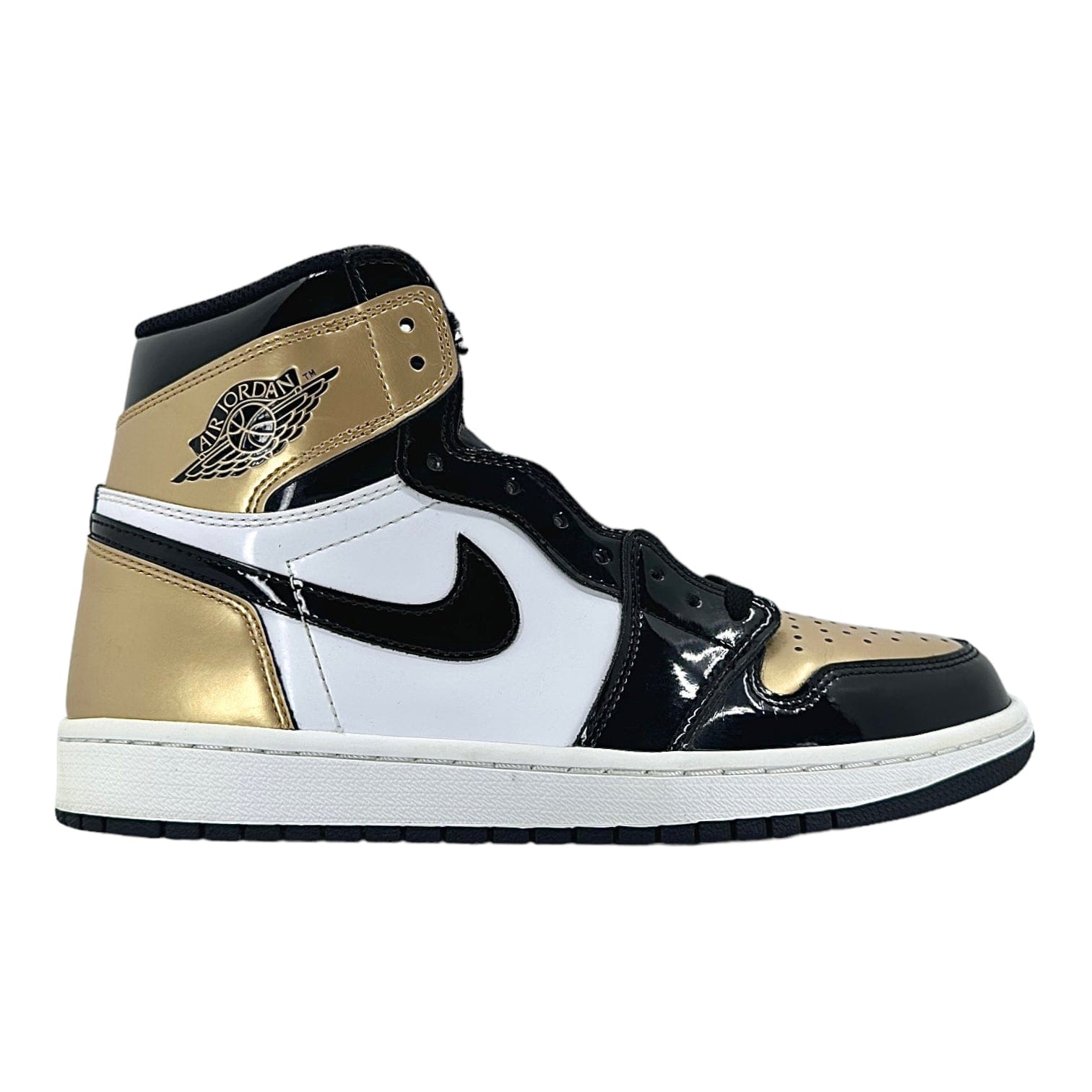 After the "Gold Top 3" AJ1s dropped at ComplexCon in 2017, Nike decided to strike while the gold was hot with the Jordan 1 Retro High NRG Patent Gold Toe. Known as the "Patent Gold Toe" edition, these AJ 1’s came in the same black, metallic gold and summit white colorway as the "Gold Top 3s." However, they feature gold toes and tongue tags as well as black tongues on both sneakers. The medial of each shoe is also in black/gold while the lateral in white, black and gold. Their release date was February 16th, 2018, costing the usual $160 in men’s sizes and $120 for grade school sizes.