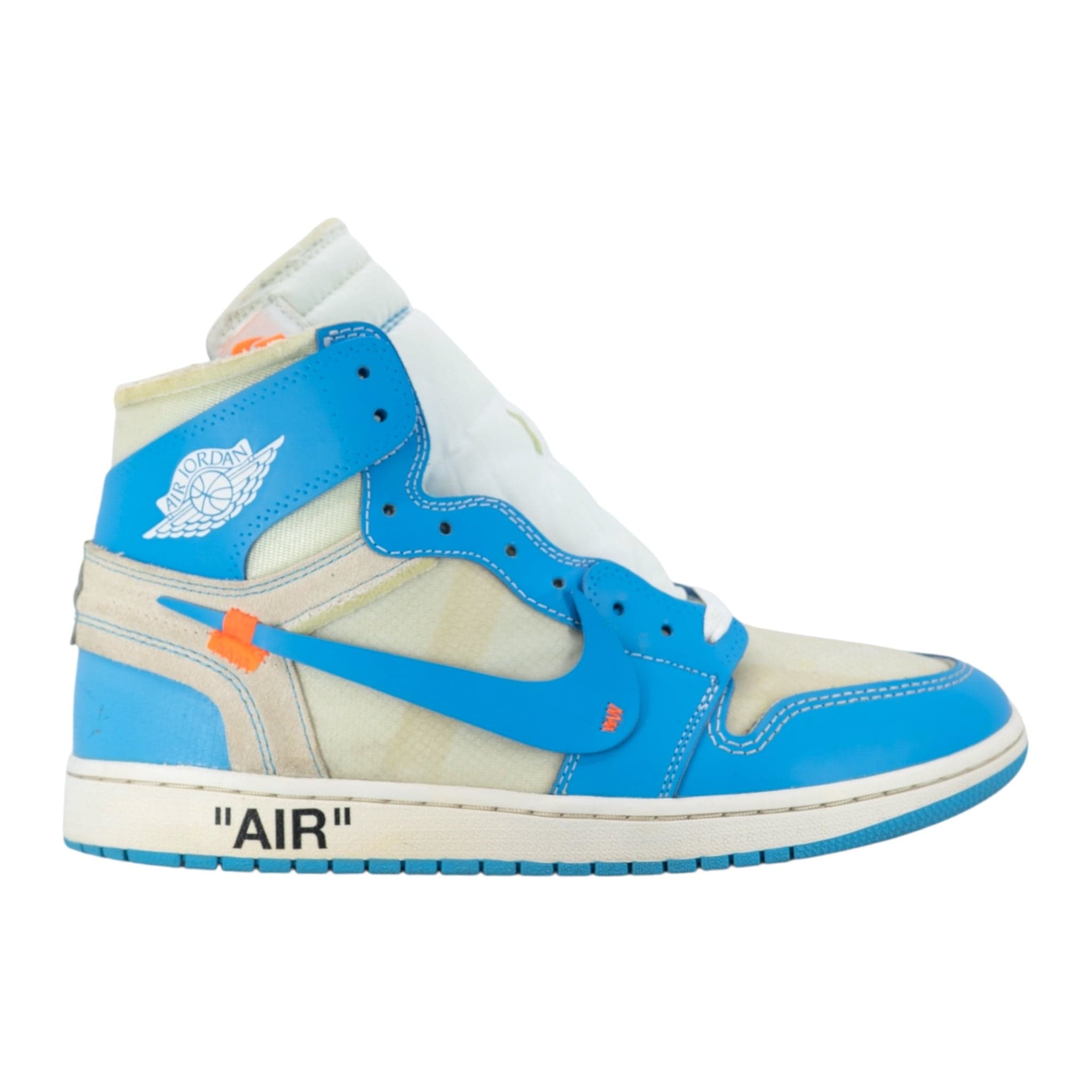 Time for some Tobacco Road vibes with these Jordan 1 Retro Off-Whites. Also known as the "UNC" editions, these Jordan 1s are the third colorway designed by Virgil Abloh and made in collaboration with his Off-White label. The sneakers come in a white, dark powder blue and cone colorway, with a white and blue deconstructed leather upper and Off-White detailing throughout. If you’re a fan of Virgil Abloh’s work and want to rep Off-White, this pair is another must-have.