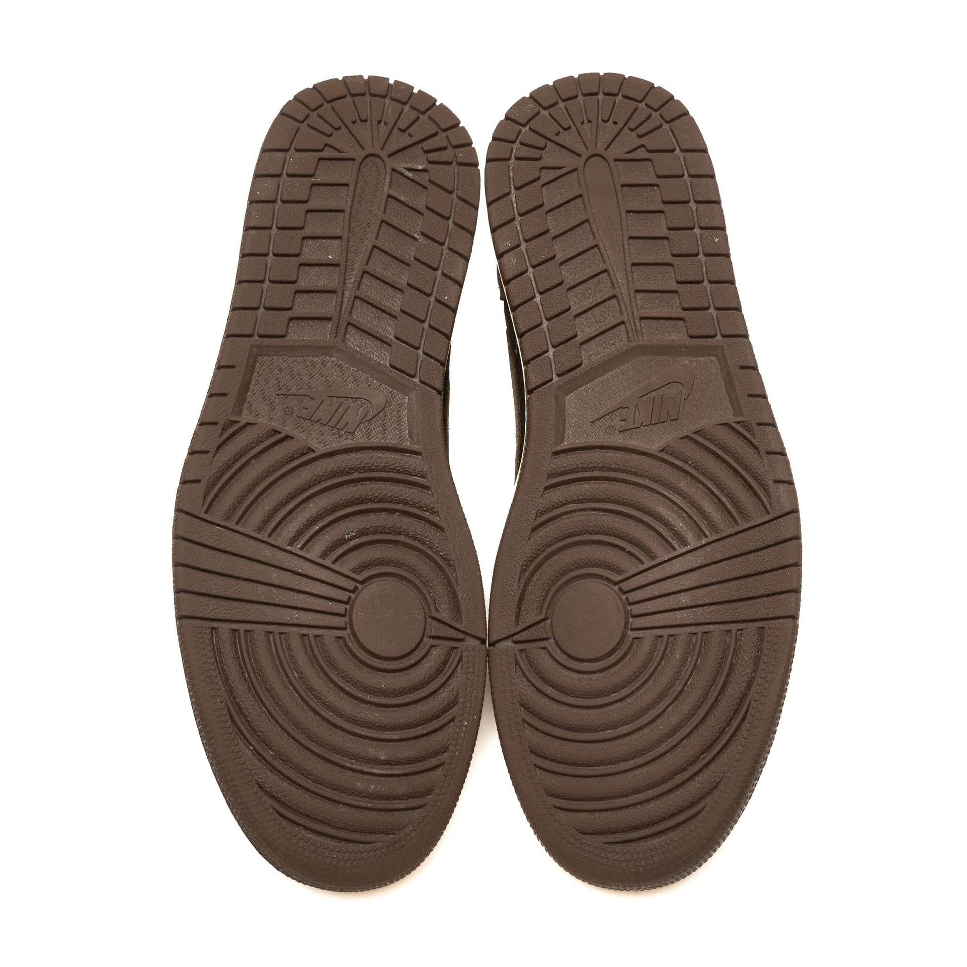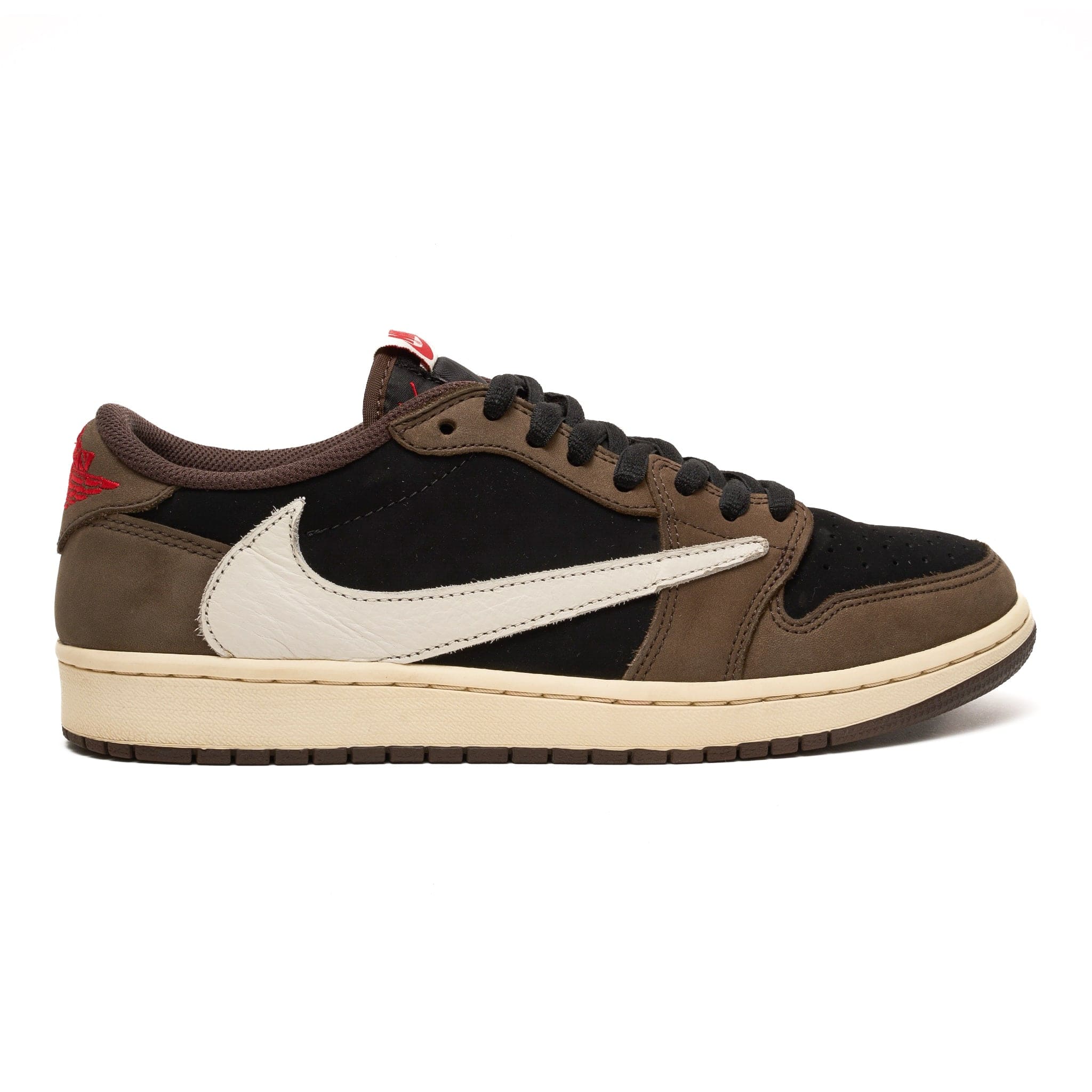 This AJ 1 Low features a black upper with dark brown overlays and red accents on the branding. Much like the Air Jordan 1 High Travis Scott, La Flame added his signature backwards Swoosh logo on the lateral side. "Cactus Jack" insignias on the heel and inner upper atopa sail midsole and dark brown outsole completes the design. These sneakers released in July of 2019 and retailed for $130.