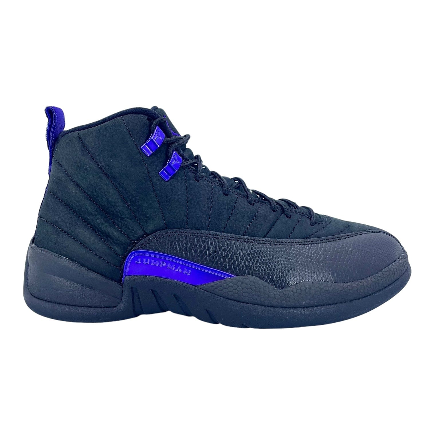 The Jordan 12 Dark Concord comes dressed in all black with Concord purple metallic detailing found on the forefoot, lace holders, and heel tab. Purple Jumpman embroidery on the tongue and a black outsole with carbon fiber inserts complete this upgraded iteration of the 1997 classic.