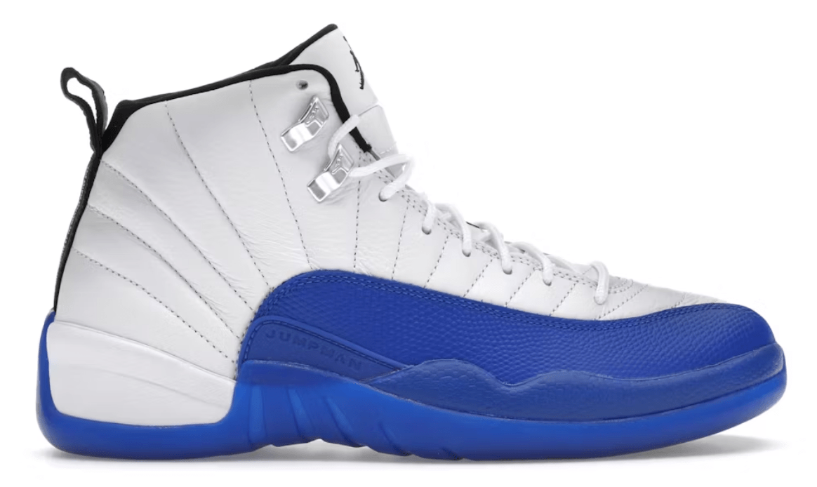 The Air Jordan 12 Retro Blueberry reimagines an iconic design with a fresh twist, fusing heritage and modernity in a bold new colorway. Inspired by the original Cherry Air Jordan 12, this version trades vibrant red for an eye-catching game royal blue, paired with a clean white upper and subtle black accents. The smooth white leather upper provides a crisp canvas, while textured overlays and silver metal eyelets bring the classic silhouette to life.