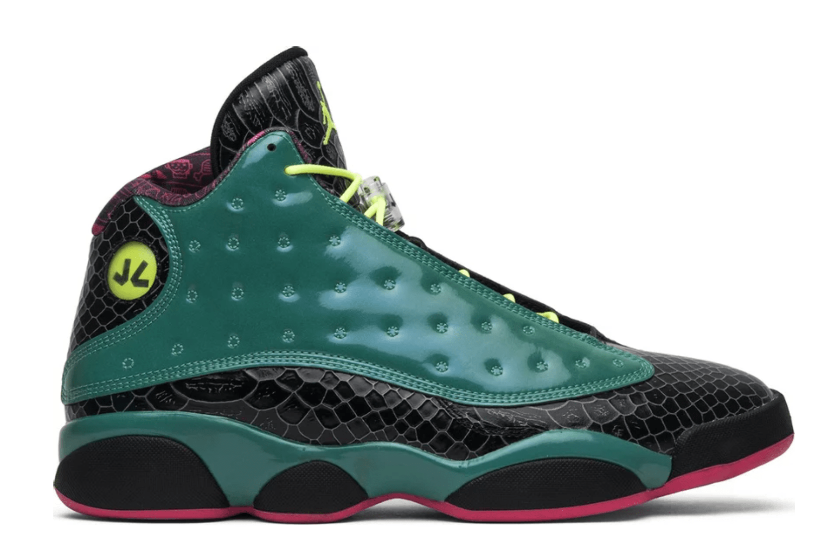 The Air Jordan 13 Retro Doernbecher is a limited edition sneaker that was released on November 21, 2015, with a retail price of $225. The shoe was designed by John Charles, a patient at the Doernbecher Children's Hospital in Portland, Oregon. The design features a black and green colorway with a textured upper and patent leather accents. The shoe also includes unique details such as Charles' initials on the tongue and a graphic of his favorite animal, a cheetah, on the insole. The Air Jordan 13 Retro Doernbecher is made with high-quality materials, including leather and suede, and features a comfortable and supportive fit. This sneaker is a must-have for collectors and fans of the Air Jordan brand.