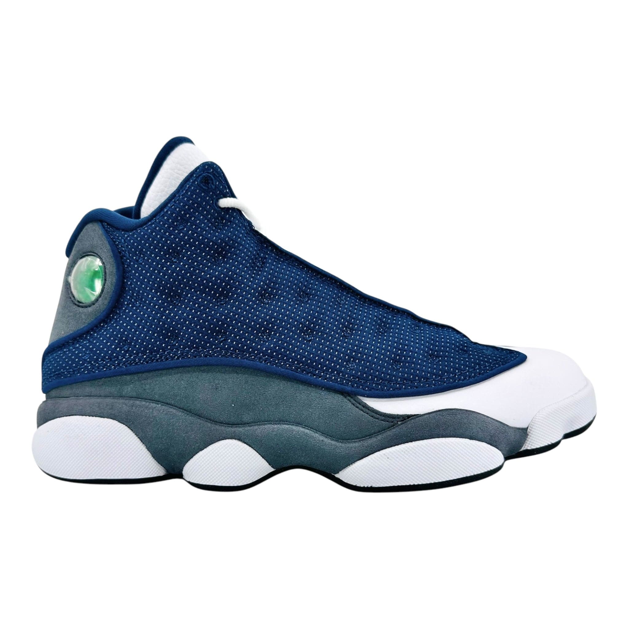 This Jordan 13 Retro consists of a navy mesh and white leather upper with flint grey suede underlays. A Jumpman holograph on the ankle, 3M detailing throughout the upper, and Carolina blue branding on the tongue completes the design. These sneakers released in May of 2020 and retailed for $190 USD.
