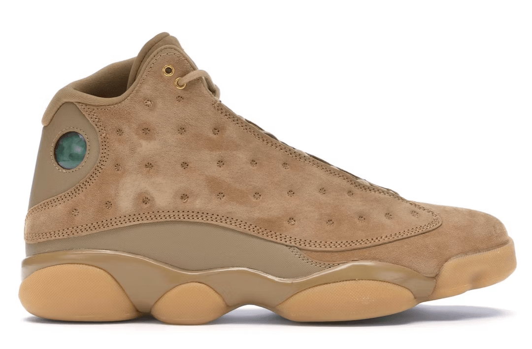 This Air Jordan 13 Retro is known as the "Wheat" edition. Not to be confused with the original white/wheat release from 2004. This pair, which debuted during the 2017 Holiday footwear collection from Jordan Brand comes in an all-new elemental gold, baroque brown and gum yellow colorway. Sporting a full premium suede upper in wheat, finished off by leather detailing and a full gum rubber sole. Their release date was November 24th, 2017 where they were available at select Jordan Brand retailers worldwide. A limited drop, they retail for $190 in men's sizing and $140 for gradeschool. If you're a fan of wheat sneakers, don't sleep on this Air Jordan 13 Retro. They're prefect for the cold weather and a great option for those who don't have the OG '04 release. Those looking for a pair of these bad boys can hit up the marketplace and buy them today. If you have pairs to sell, list them online for others top cop.