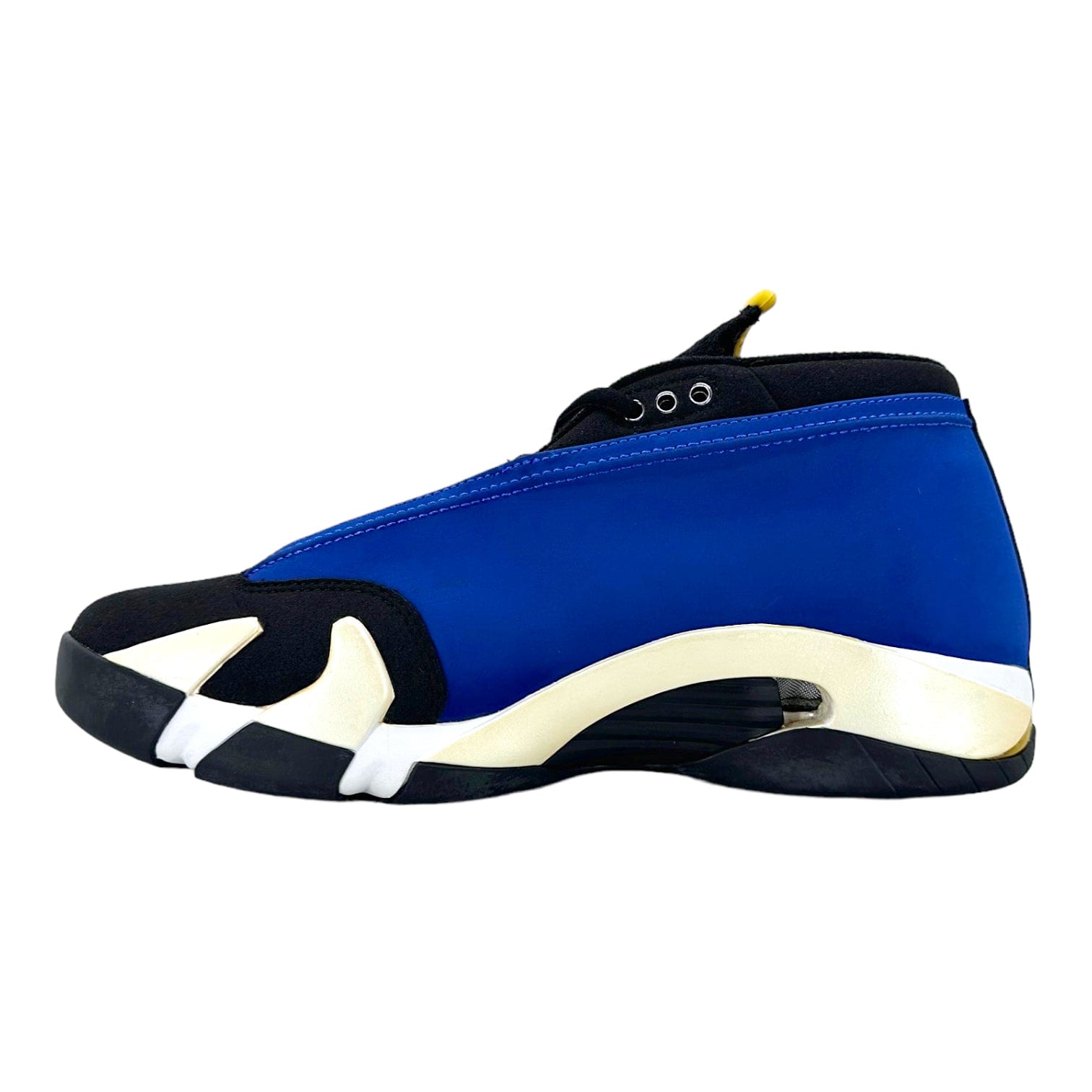 The upper of the shoe mixes premium materials, such as a combination of nubuck and leather. Varsity Royal Blue dominates the upper portion of this AJ 14 colorway, with contrasting touches of black and white. Its construction also incorporates design influences from Ferrari. It has elements like side panels with ribs that resemble air vents and a carbon fiber shank plate in the midfoot. In addition, it features a full-length Zoom Air unit in the midsole for a light and responsive ride and responsive cushioning for comfort and impact protection.