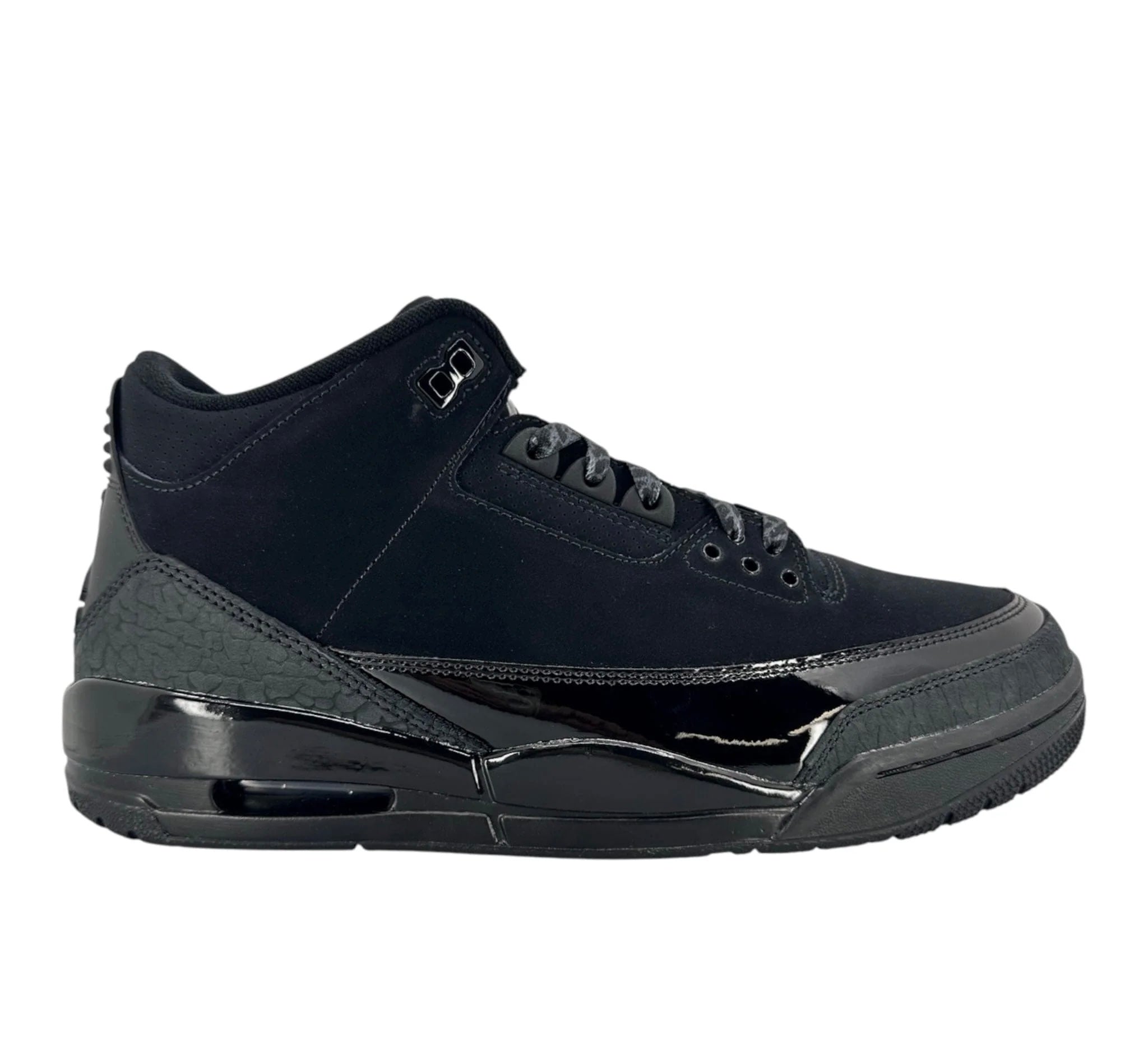 Style CT8532-001 Colorway Black/Dark Charcoal/Black Retail Price $200 01/11/2025 Product Description The Air Jordan 3 Retro Black Cat (2025) is a revival of an iconic silhouette that exudes stealthy elegance. Wrapped in premium black nubuck, the sneaker showcases subtle accents of dark charcoal on its signature elephant print overlays. The monochromatic design is elevated by black patent leather, unique elephant print laces and minimal black and chrome branding, creating a clean yet powerful aesthetic that resonates with Jordan’s legendary "Black Cat" persona. This modern interpretation of the Black Cat features updated materials, making it as functional as it is stylish. The classic Jumpman logo on the tongue and heel maintains its timeless appeal, while visible Air units in the sole provide both comfort and an enduring retro vibe. This sleek design perfectly balances contemporary flair with Jordan’s rich heritage. Releasing on January 11, 2025, the Air Jordan 3 Retro Black Cat (2025) comes with a retail price of $200. This updated edition remains true to its roots, cementing its place as a staple for collectors and sneaker fans who value iconic design and unmatched craftsmanship.