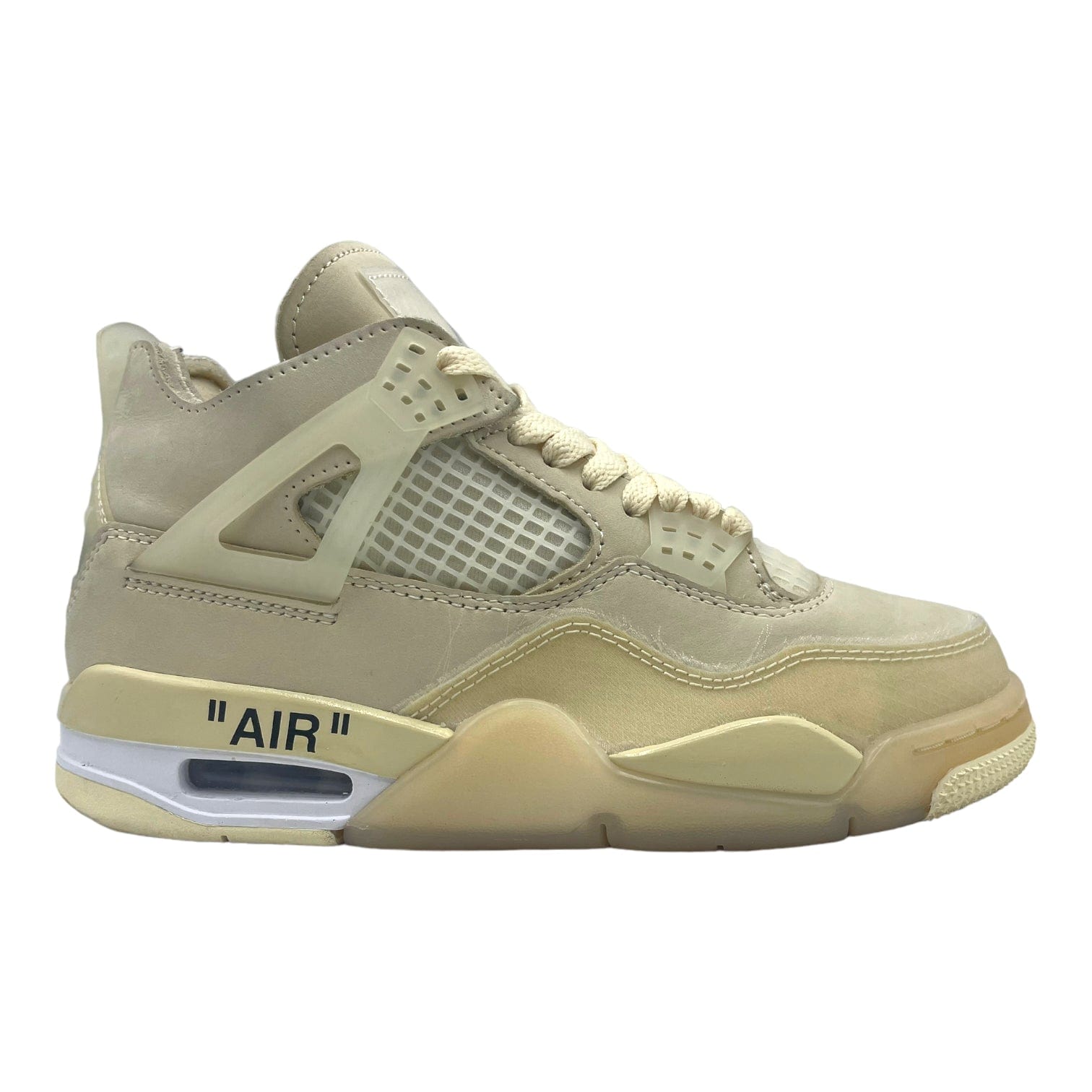 Jordan Brand and Virgil Abloh teamed up once again to release the third silhouette in their collaborative history with the women's Jordan 4 Retro Off-White Sail (W), now available. After teasing the release of the Off-White 4 with samples in his MCA exhibit and presenting them in his Off-White FW2020 Women’s Show, Virgil Abloh finally delivered what might be the most anticipated release of 2020. The Air Jordan 4 Sail features full-grain leather uppers with hits of mesh and translucent materials on the toebox and heel of the shoe. From there, hits of light blue on the tongue’s Jumpman and the outsole’s Nike Swoosh provide contrast to the sail colored sneaker. These women's sneakers released in July of 2020 and retailed for $200 USD.