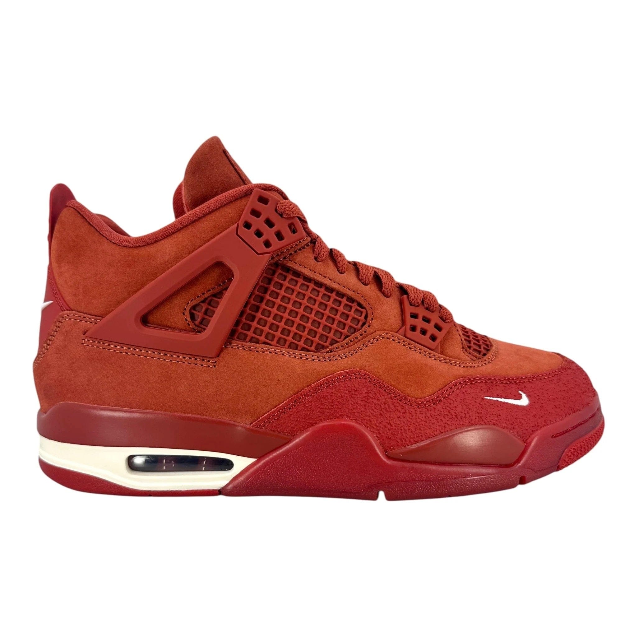 The Air Jordan 4 Retro OG SP Nigel Sylvester Brick by Brick is a tribute to NYC's red-bricked streets, where Nigel Sylvester honed his BMX skills. As a long-time Jordan Brand collaborator, Sylvester fuses his love for biking with sneaker culture, crafting a bold design that reflects his journey. The firewood orange suede upper and sail midsole deliver a striking contrast, while the Bike Air branding on the heel adds a unique twist to the traditional Nike Air logo.