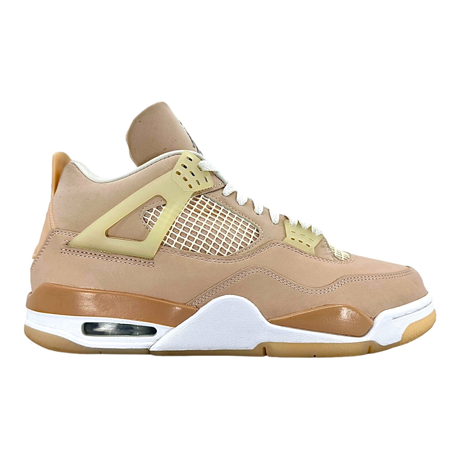 The Air Jordan 4 Shimmer (W) arrives with a buttery beige Durabuck upper with semi-translucent "Wings" and a monotone Orange Bronze heel tab. In place of the classic Jordan Flight tongue patch, a metallic Jumpman logo adds contrast to the softer tones in the design.