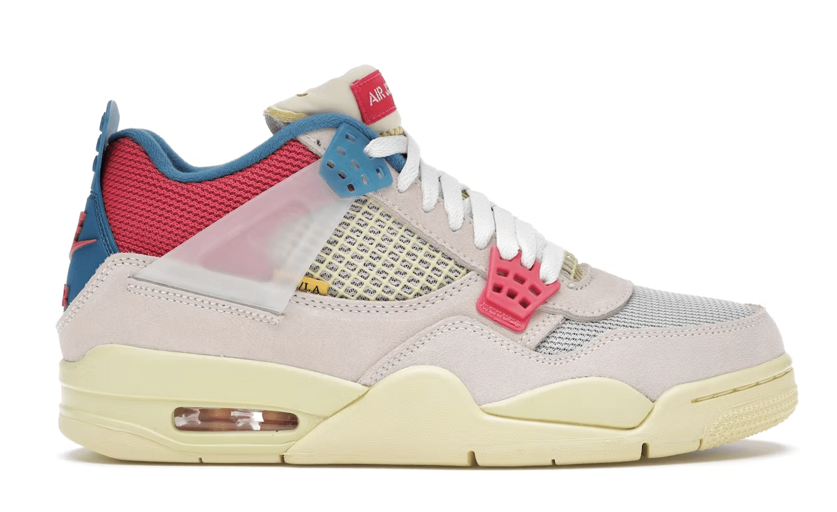 The Air Jordan 4 Union Guava Ice features many new elements never before seen on the silhouette. The most notable addition comes in the form of a foldable nylon tongue, showing off the "Air Jordan" logo traditionally stitched on the tongue’s backside. From there, hits of Guava, Fusion Red, and Brigade Blue make this Air Jordan 4 one of the more colorful releases for the model.