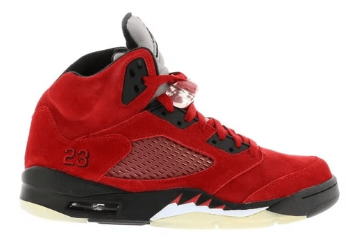 Origins NYC offers this pre-owned pair of Air Jordan 5 Retro DMP in the Raging Bull colorway.