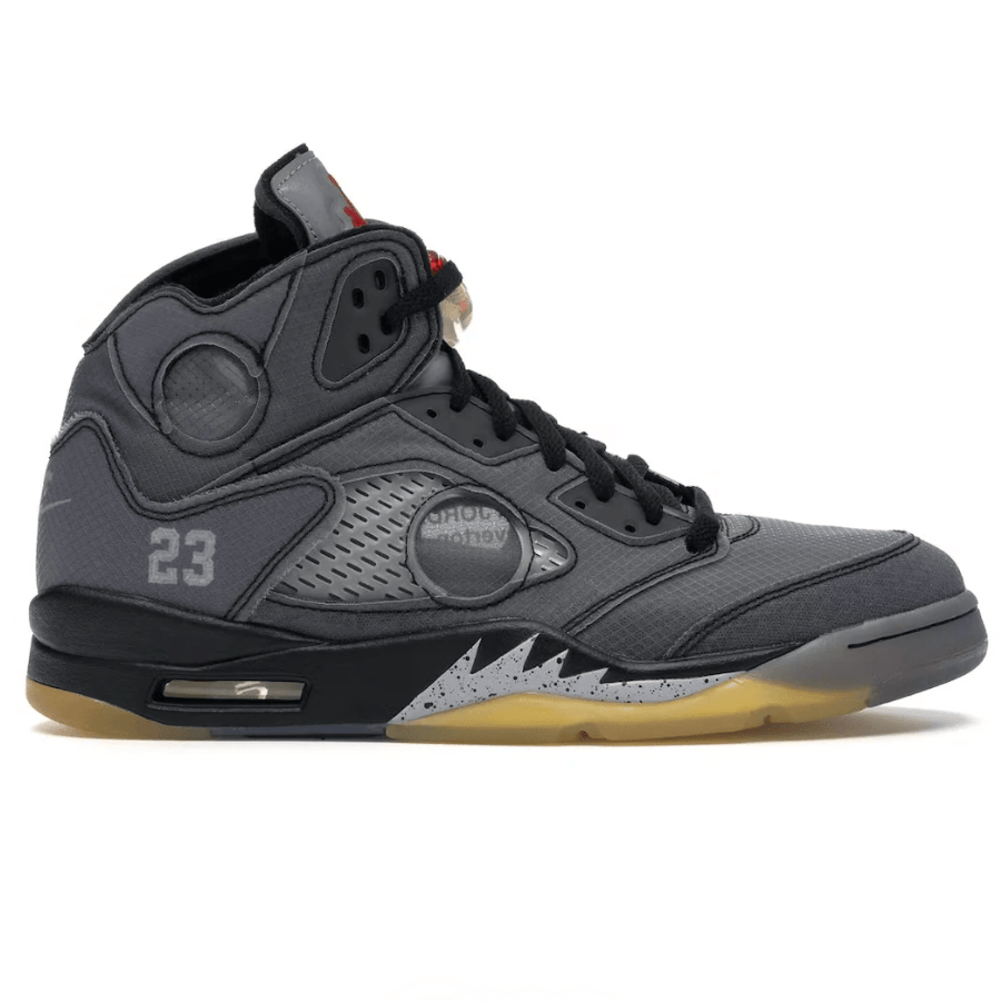 Virgil Abloh added a second Jordan silhouette to his series of Nike collaborations with the Jordan 5 Retro High Off-White Black. This release pays homage to the first Jordan that Virgil ever owned, the Air Jordan 5 Black Metallic. In signature fashion, Virgil has reimagined this classic silhouette in a way that embraces the importance of Nike Air technology.
