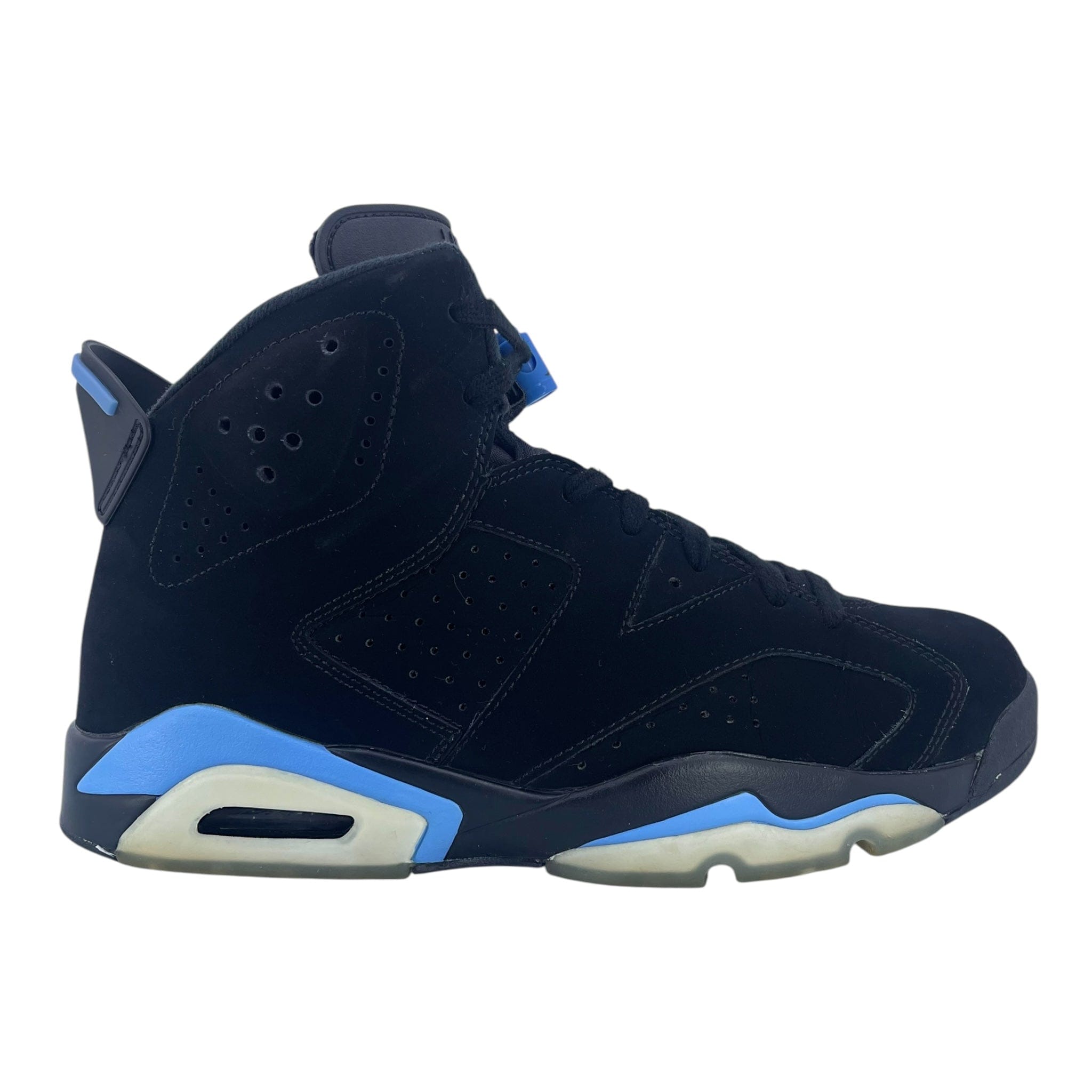 This Air Jordan 6 Retro is known as the "UNC" edition. Inspired by MJ's alma mater, the University of North Carolina, they come in a Tar Heels-inspired black and university blue colorway. Featuring a classic black-based nubuck upper, but with uni blue accents in place of traditional infrared. Finishing things off are blue branding throughout as well as icy blue translucent hits on the outsole. A holiday drop, their release date was December 23rd, 2017. Retail was $190 for men's sizes and they will also available in full-family sizing, running down to toddler. An instant classic, they were on every sneakerhead's Christmas list. Don't sleep on this Air Jordan 6 Retro because they will only become more sought after as the years go by. Those of you on the hunt for a pair can hit up the marketplace and buy them now. Or if you're looking to unload them, sell your pair online today.