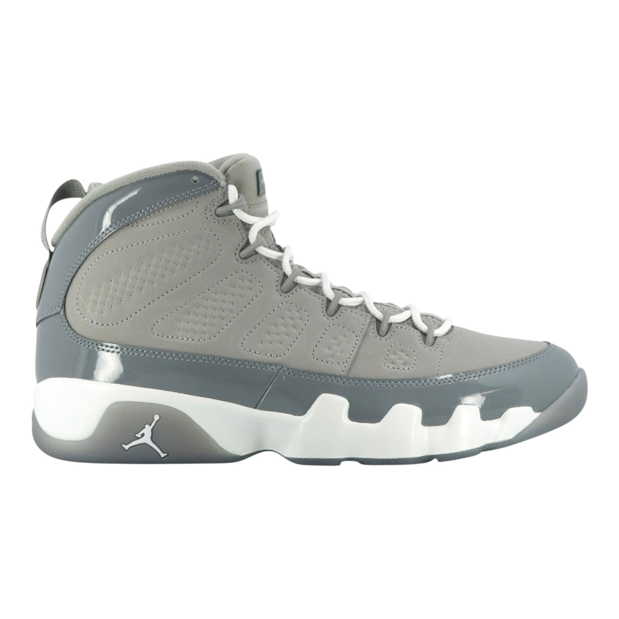 A cult favorite returns as the Jordan 9 Retro Cool Grey (2025) makes its comeback, staying true to the 2002 original. First released during MJ's time with the Washington Wizards, this non-OG colorway has gained a legendary status over the years. The medium grey nubuck upper, patent leather mudguards, and crisp white accents create a sleek, timeless aesthetic that continues to stand out decades later.