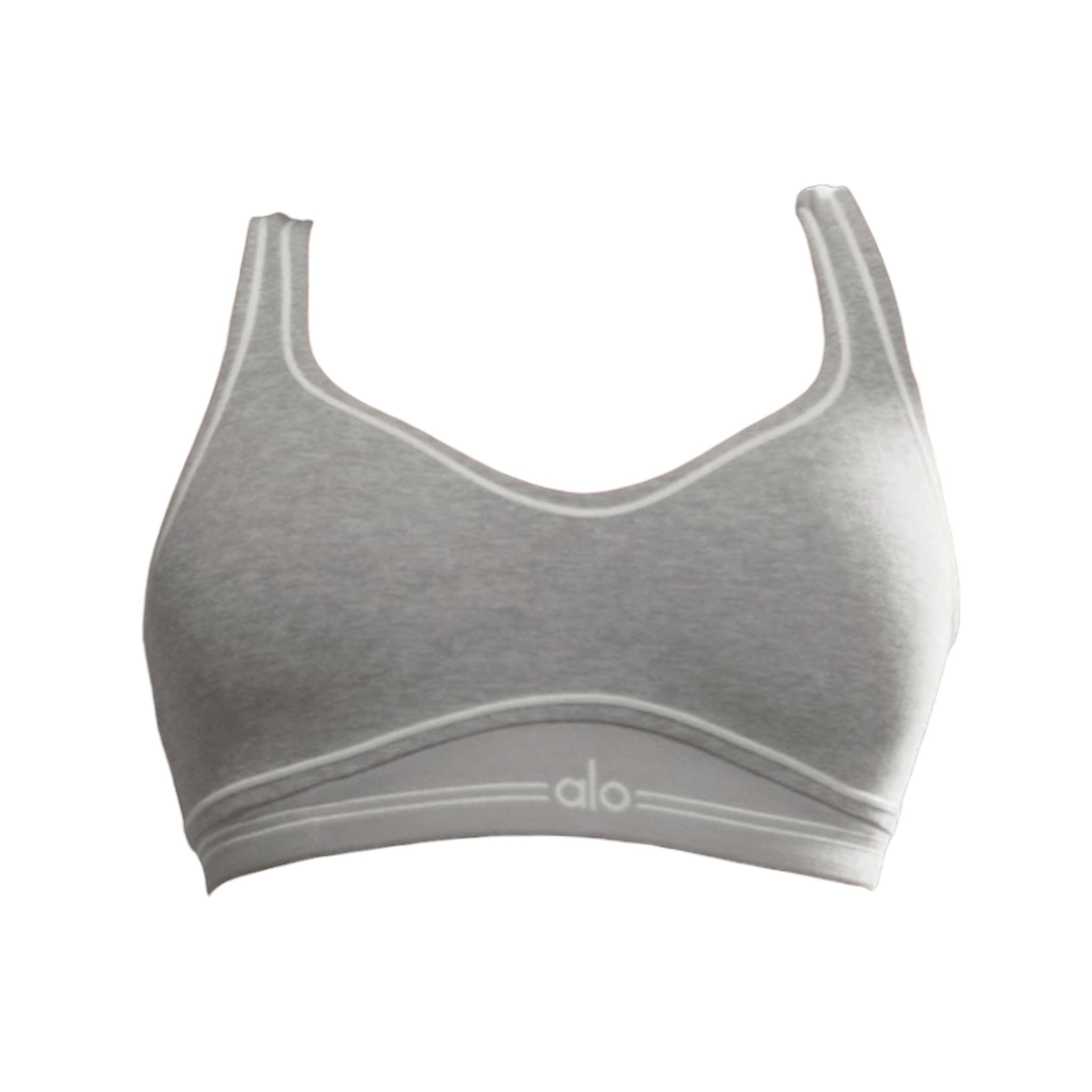 Alo Yoga Airbrush High Waist Heart Throb Bra Heather Grey White