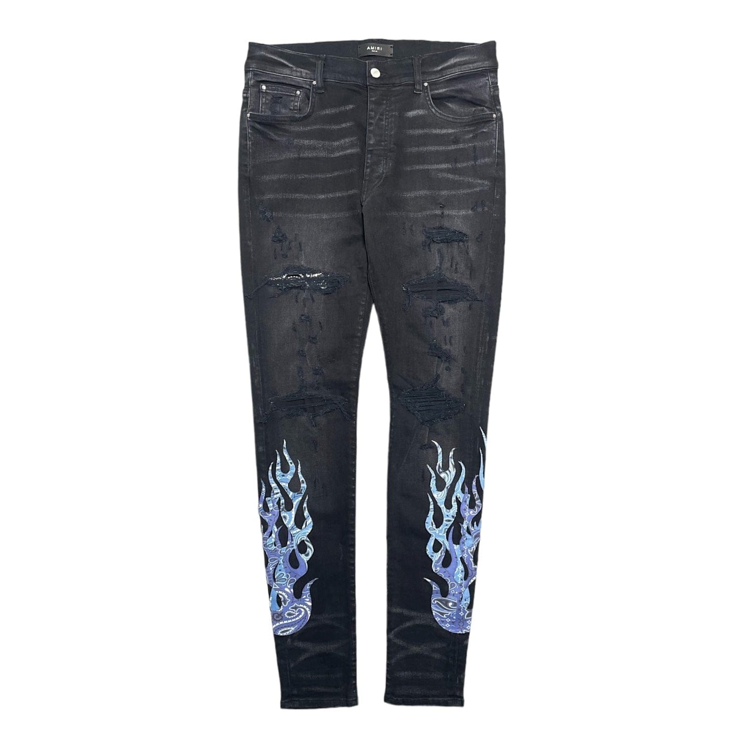 Amiri Bandana Flame Patch Jeans Aged Black Multi Pre-Owned