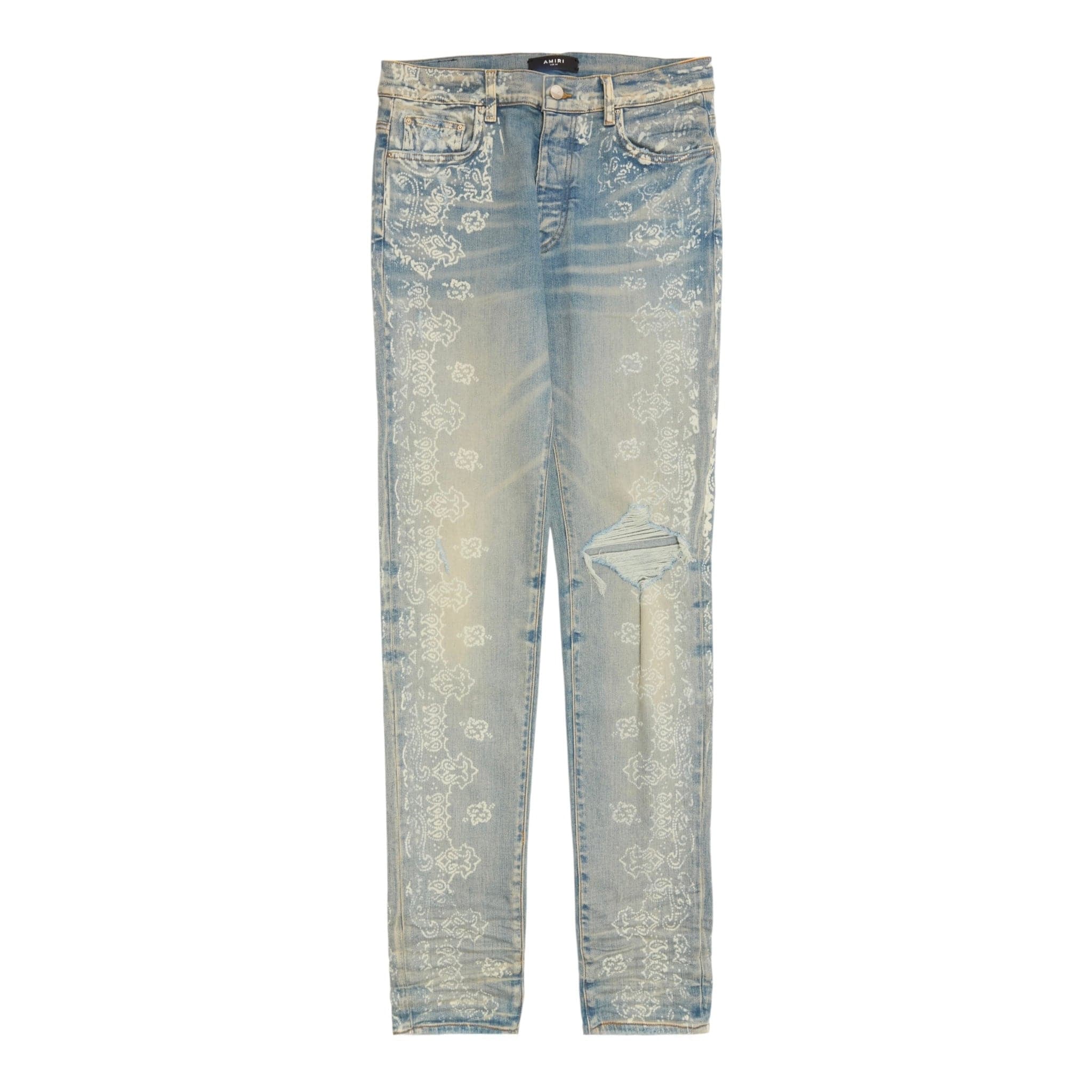 Amiri Bleach Bandana Printed Jeans Clay Indigo White