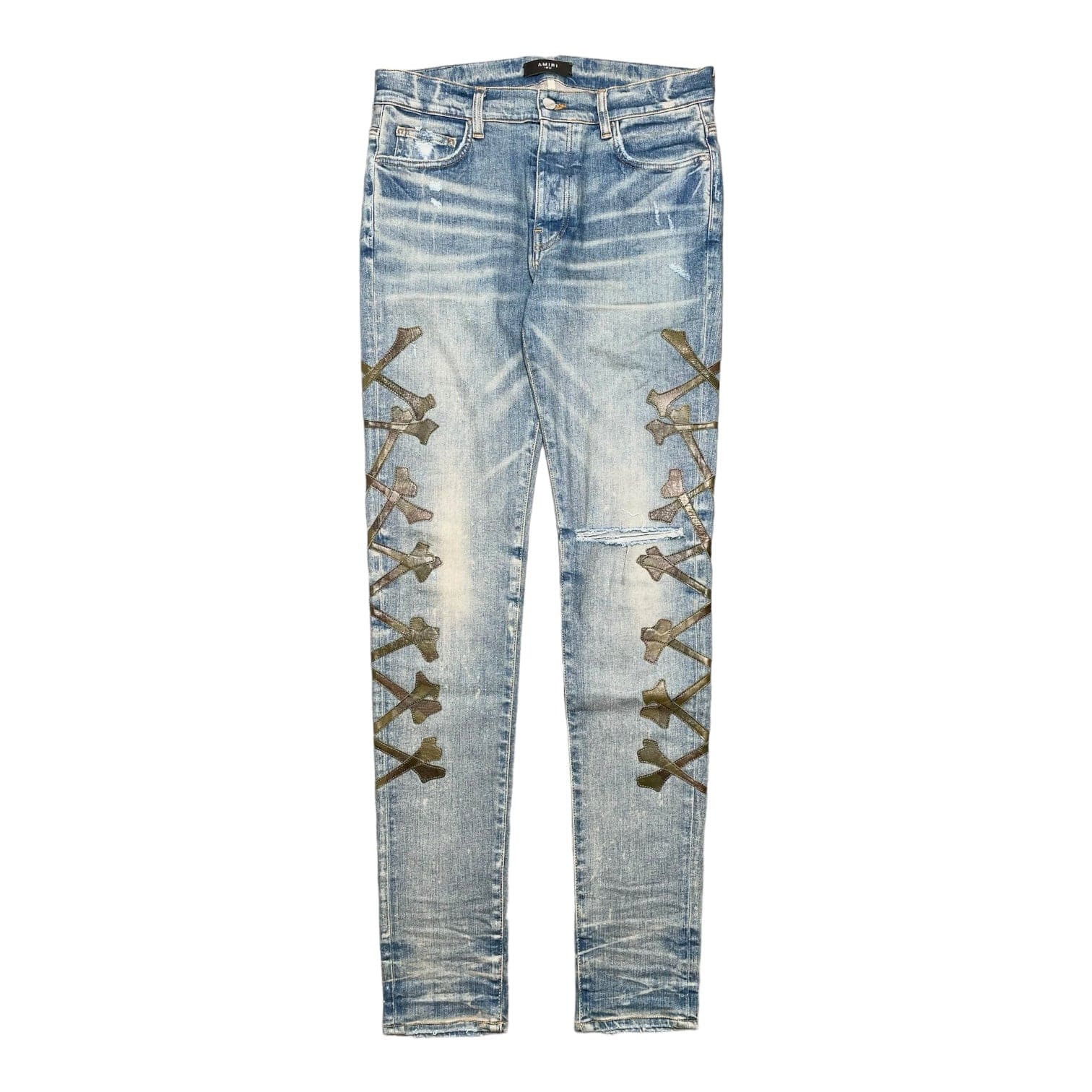 Amiri Leather Bones Patch Jeans Clay Indigo Camouflage