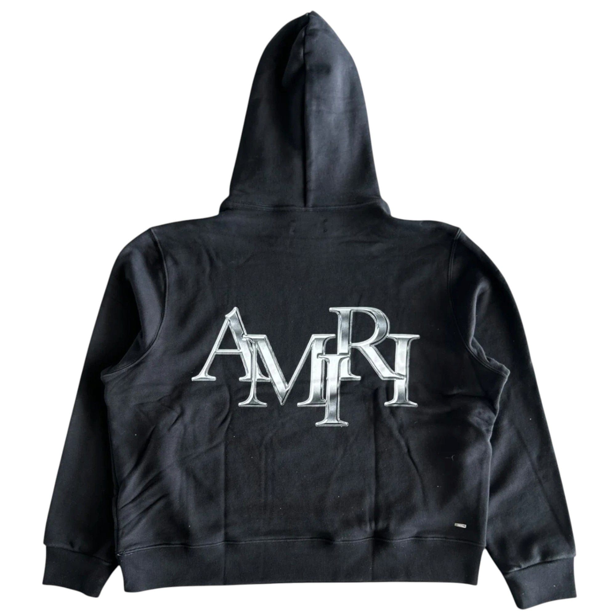 Amiri Staggered Logo Hooded Sweatshirt Black Chrome