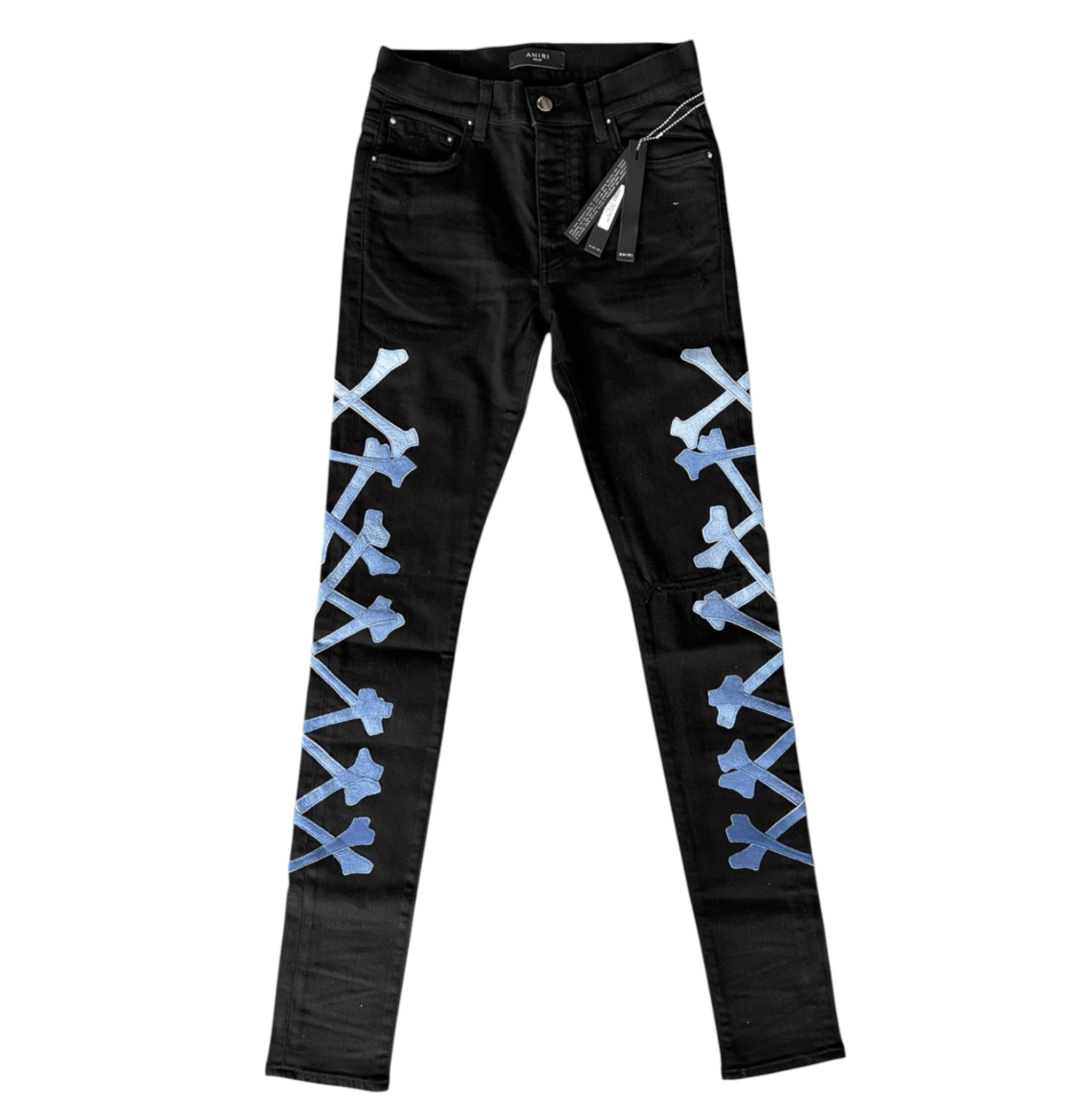 Amiri Gradient Leather Patch Bones Jeans Black Blue Pre-Owned