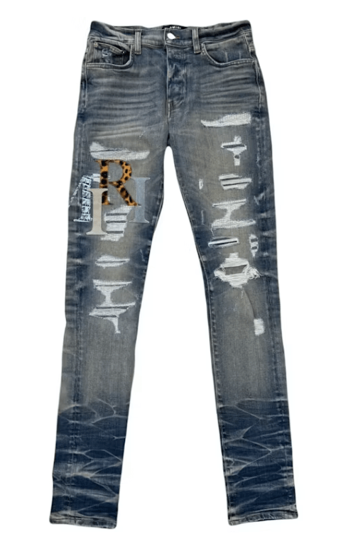 Amiri Leather Staggered Logo Jeans Vintage Indigo