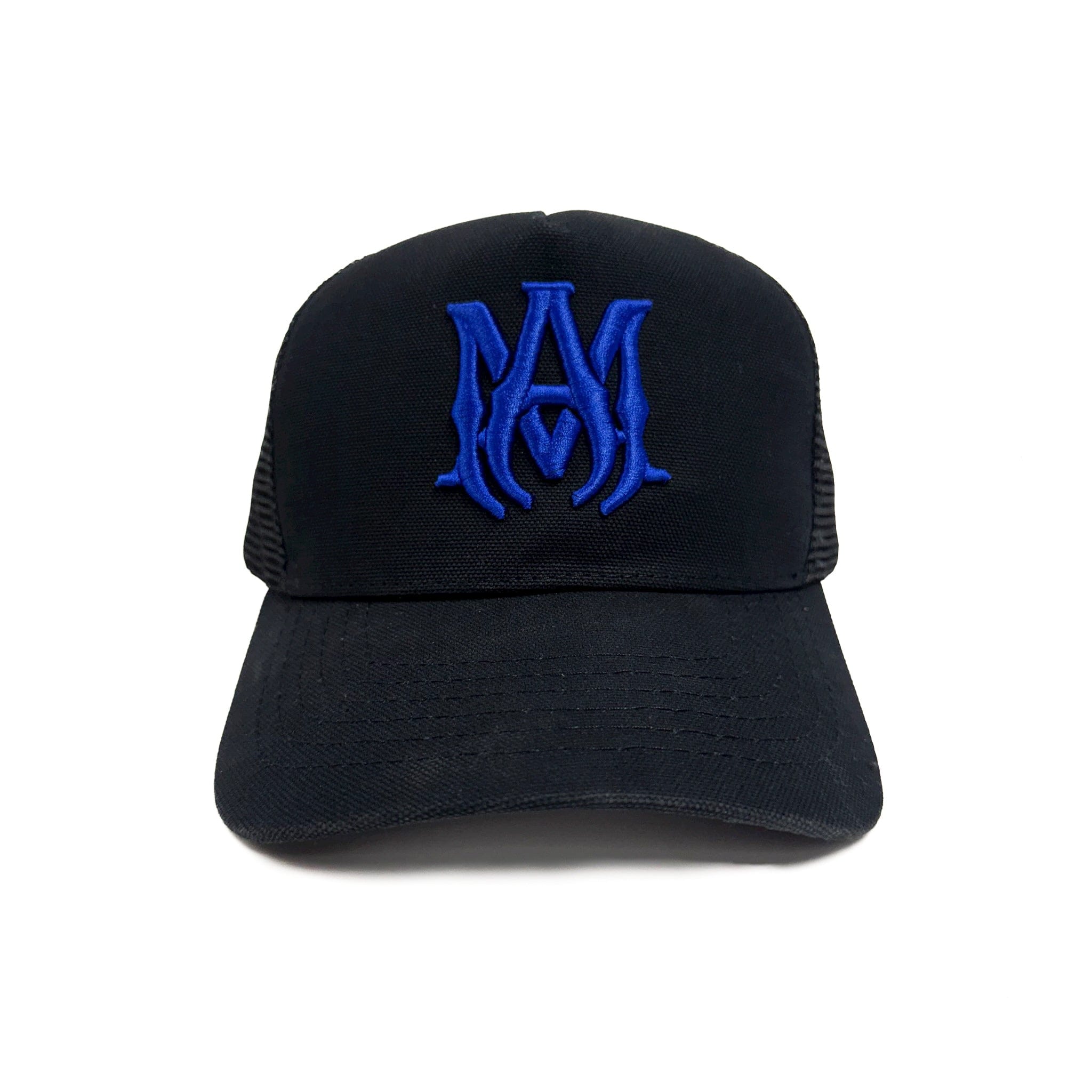 Amiri MA Logo Trucker Hat Black Royal Blue