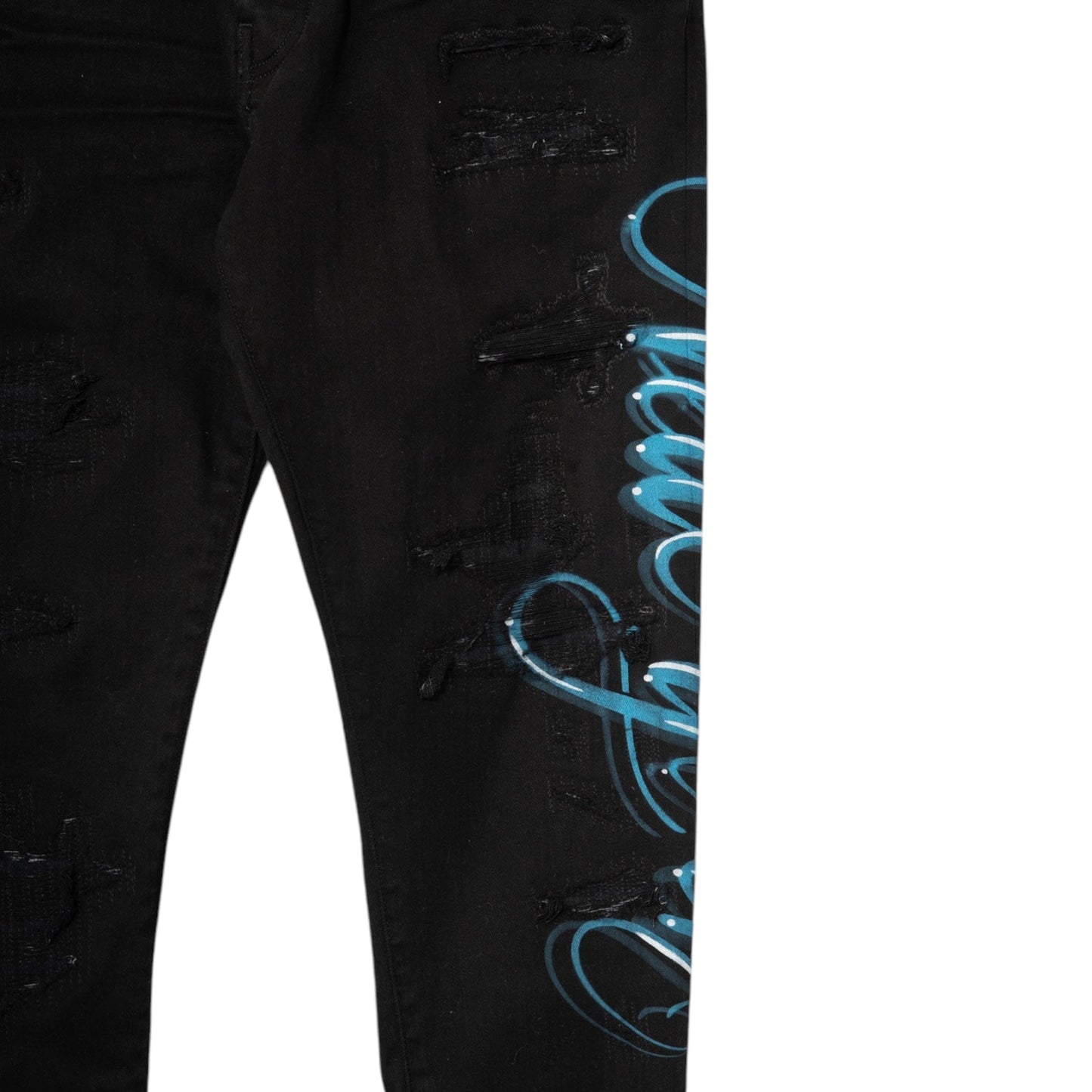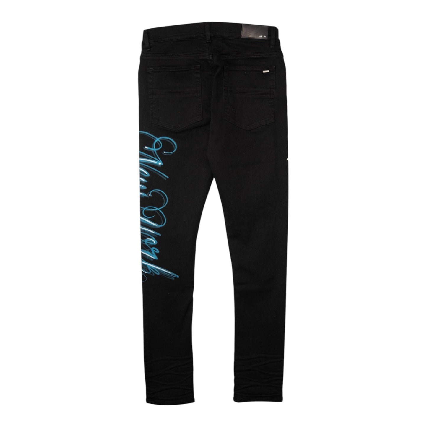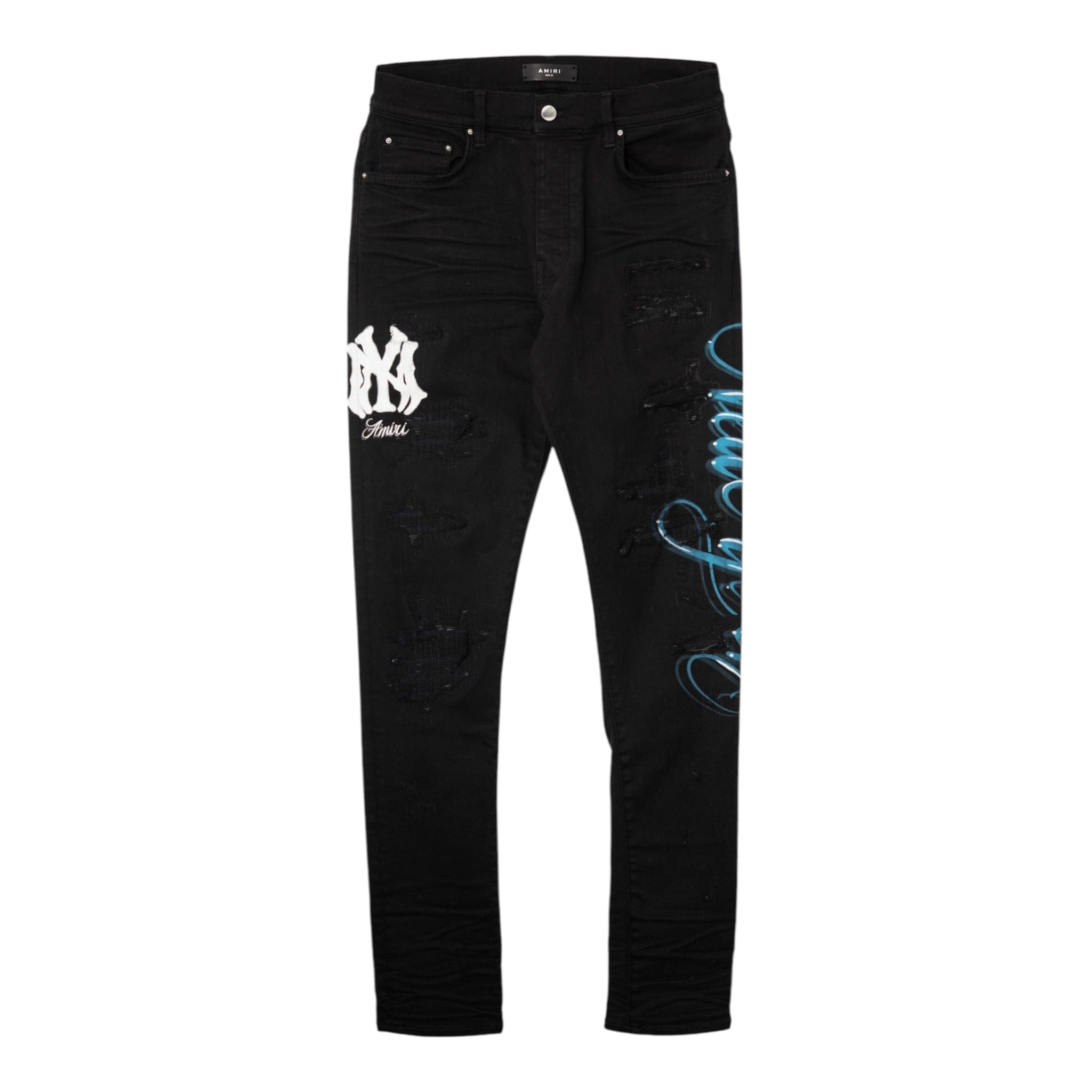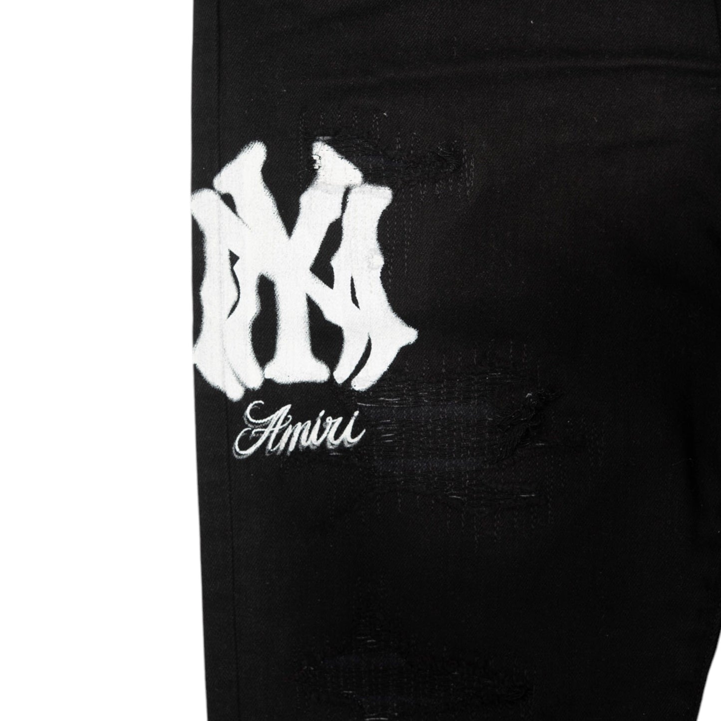 Amiri MA New York Airbrush Logo Jeans Overdyed Black Blue White