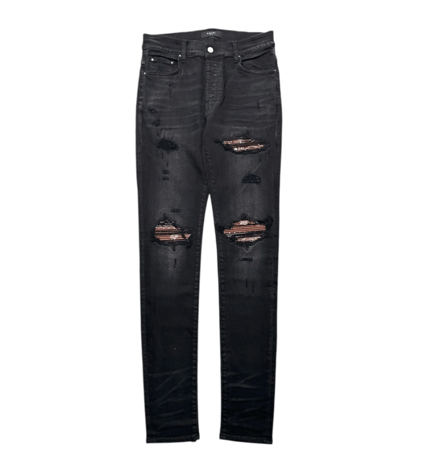 Amiri MX1 Brown Bandana Patch Jeans Aged Black