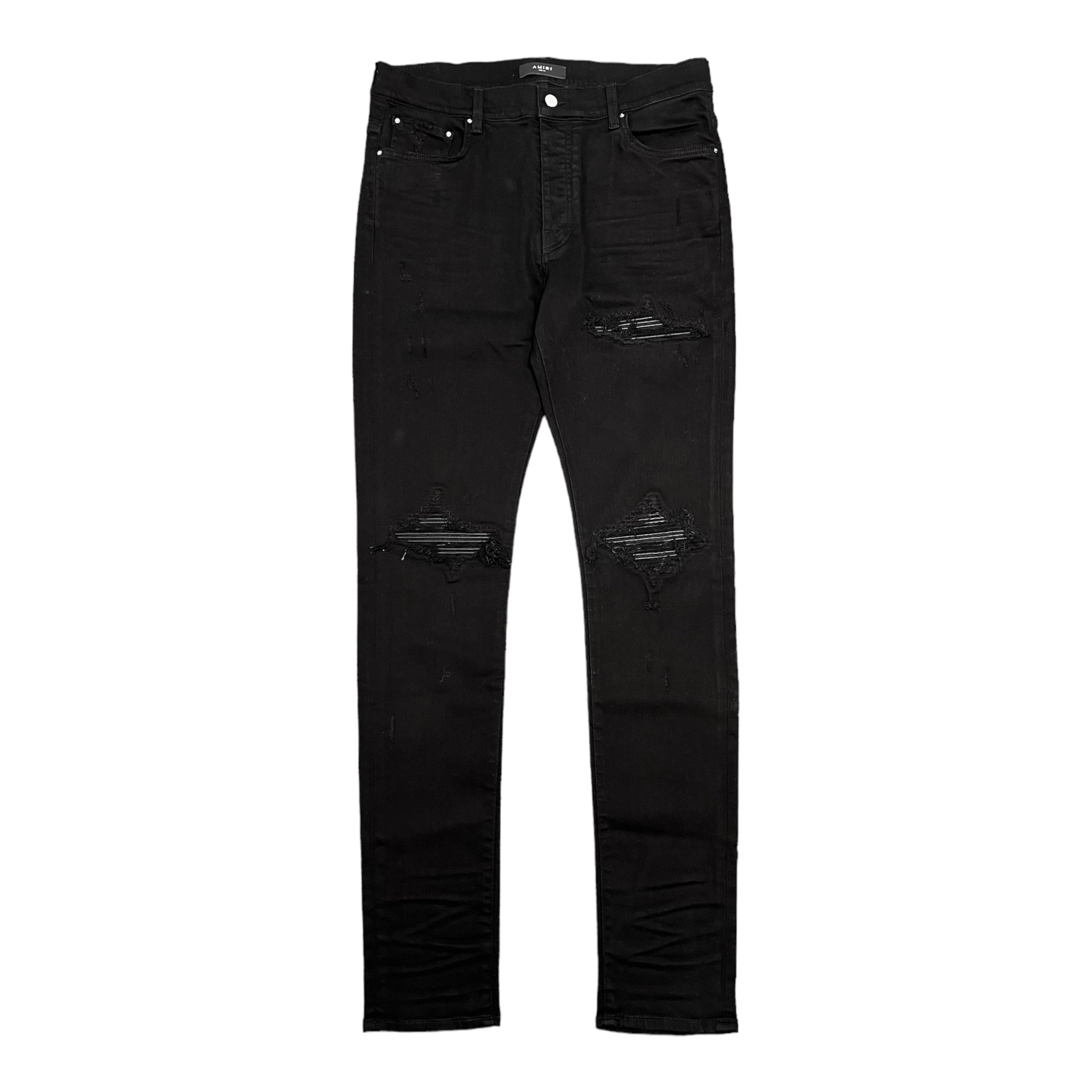 Amiri MX1 Leather Patch Jeans Black Black Pre-Owned