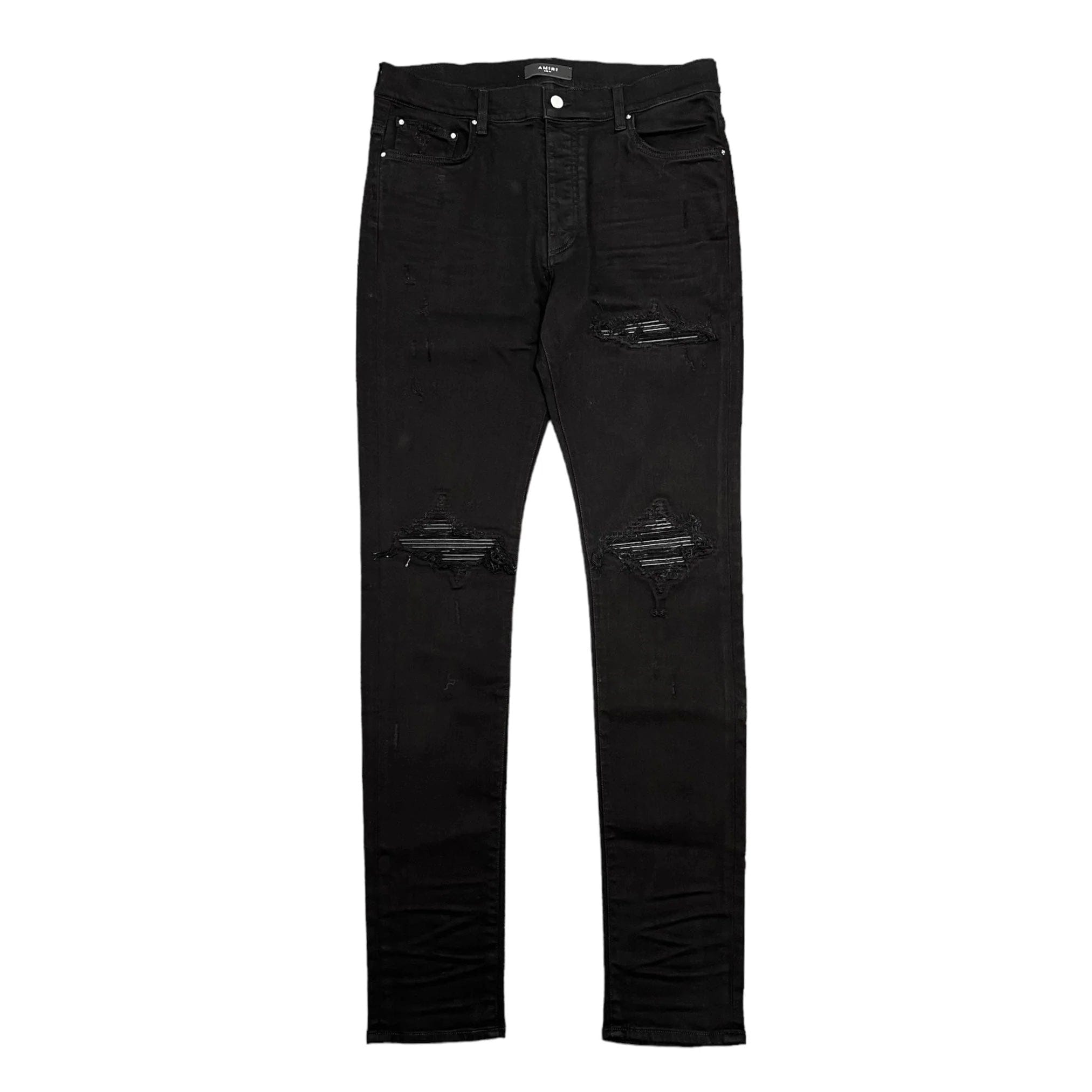 Amiri MX1 Leather Patch Jeans Black Black Pre-Owned