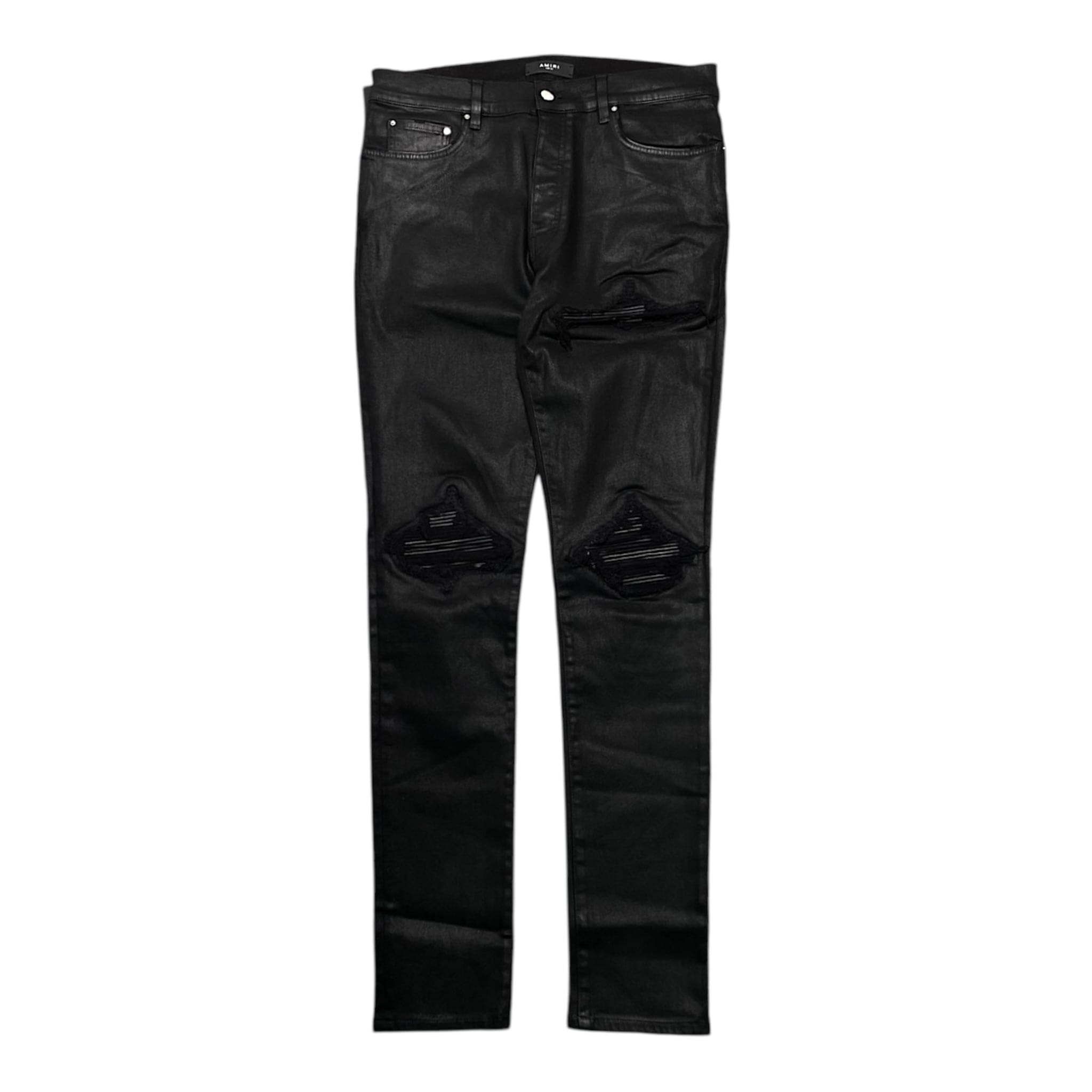 Amiri MX1 Leather Patch Jeans Waxed Black Pre-Owned