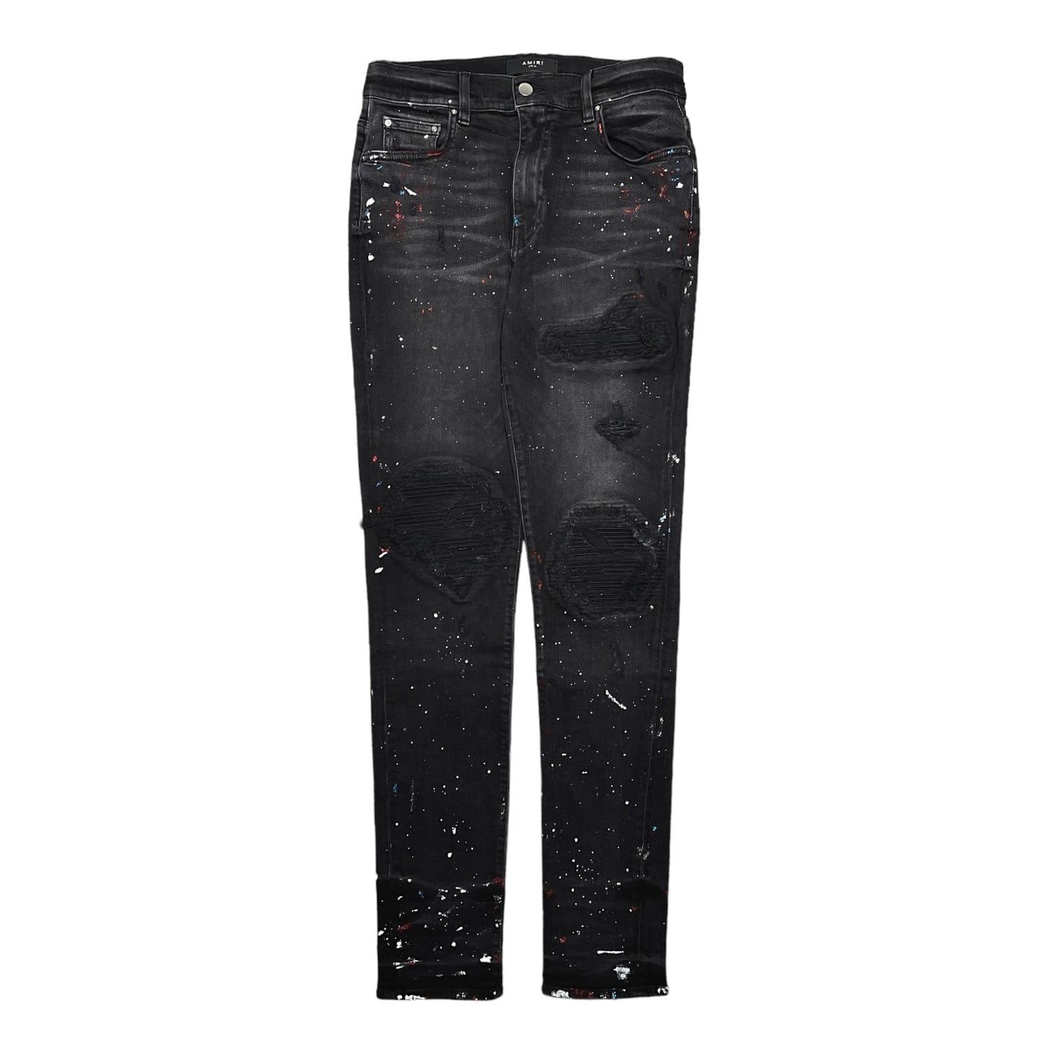 Amiri MX1 Painted Denim Patch Jeans Aged Black
