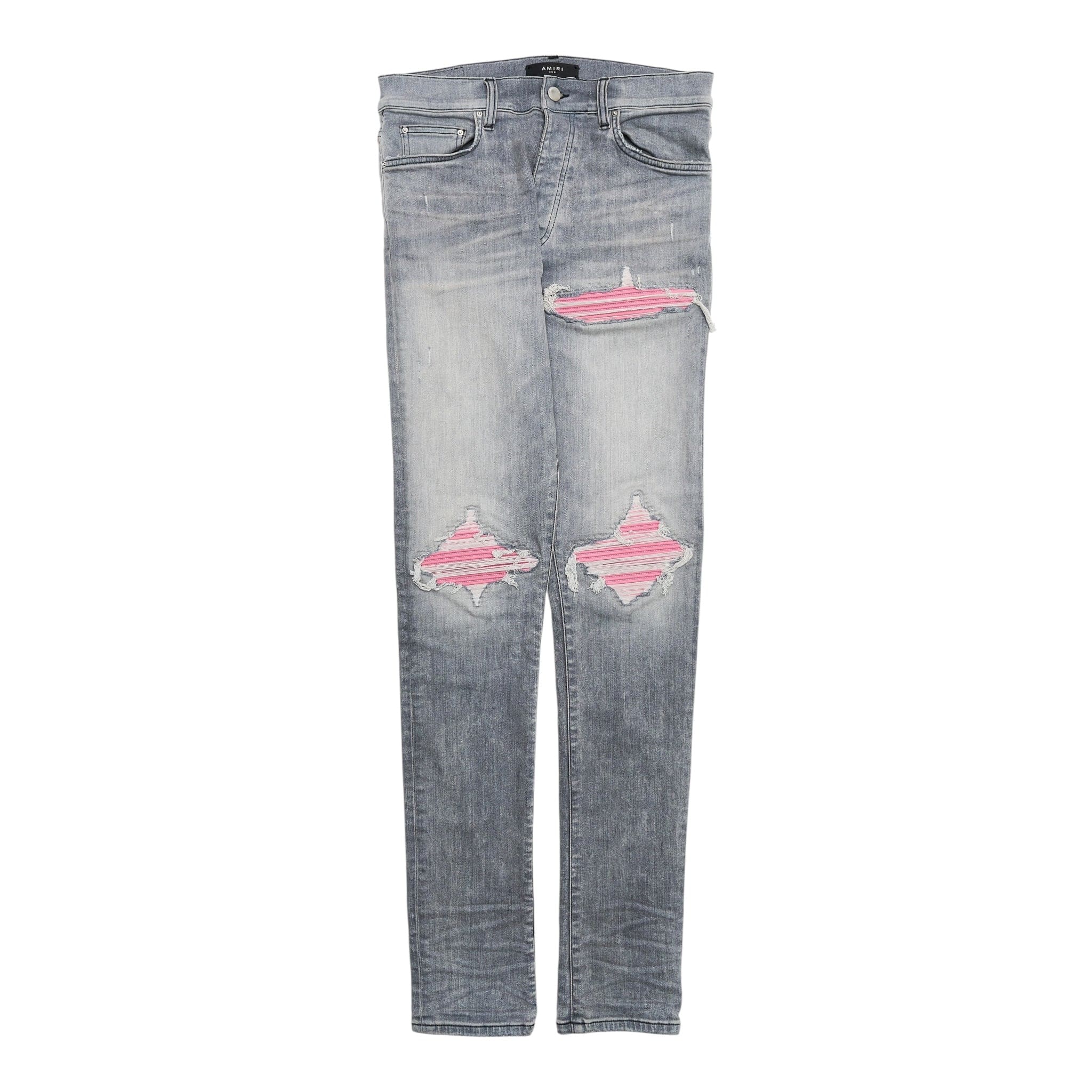 Amiri MX1 Ultrasuede Patch Jeans Concrete Grey Pink