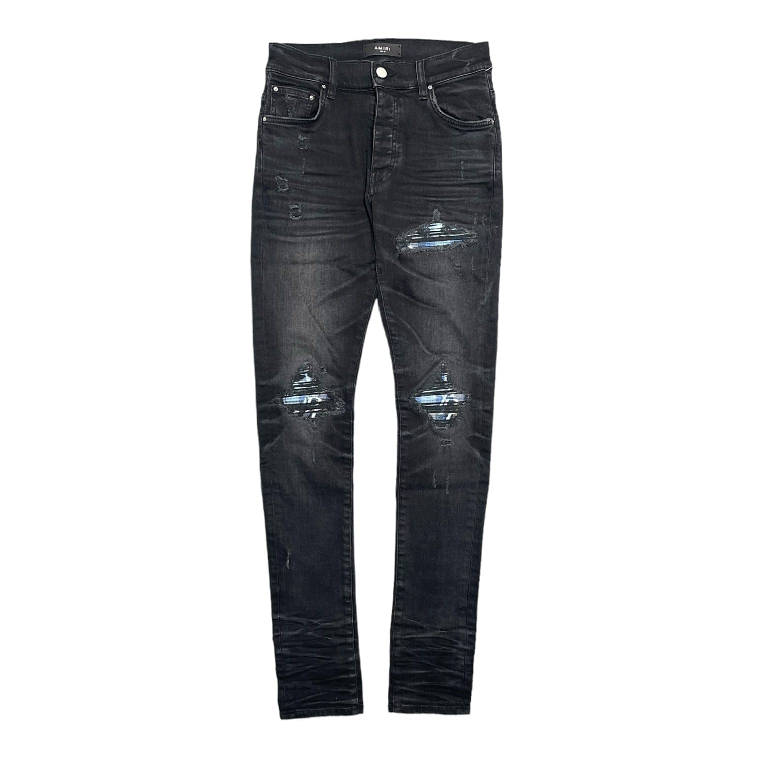 Amiri MX1 Plaid Patch Jeans Faded Black