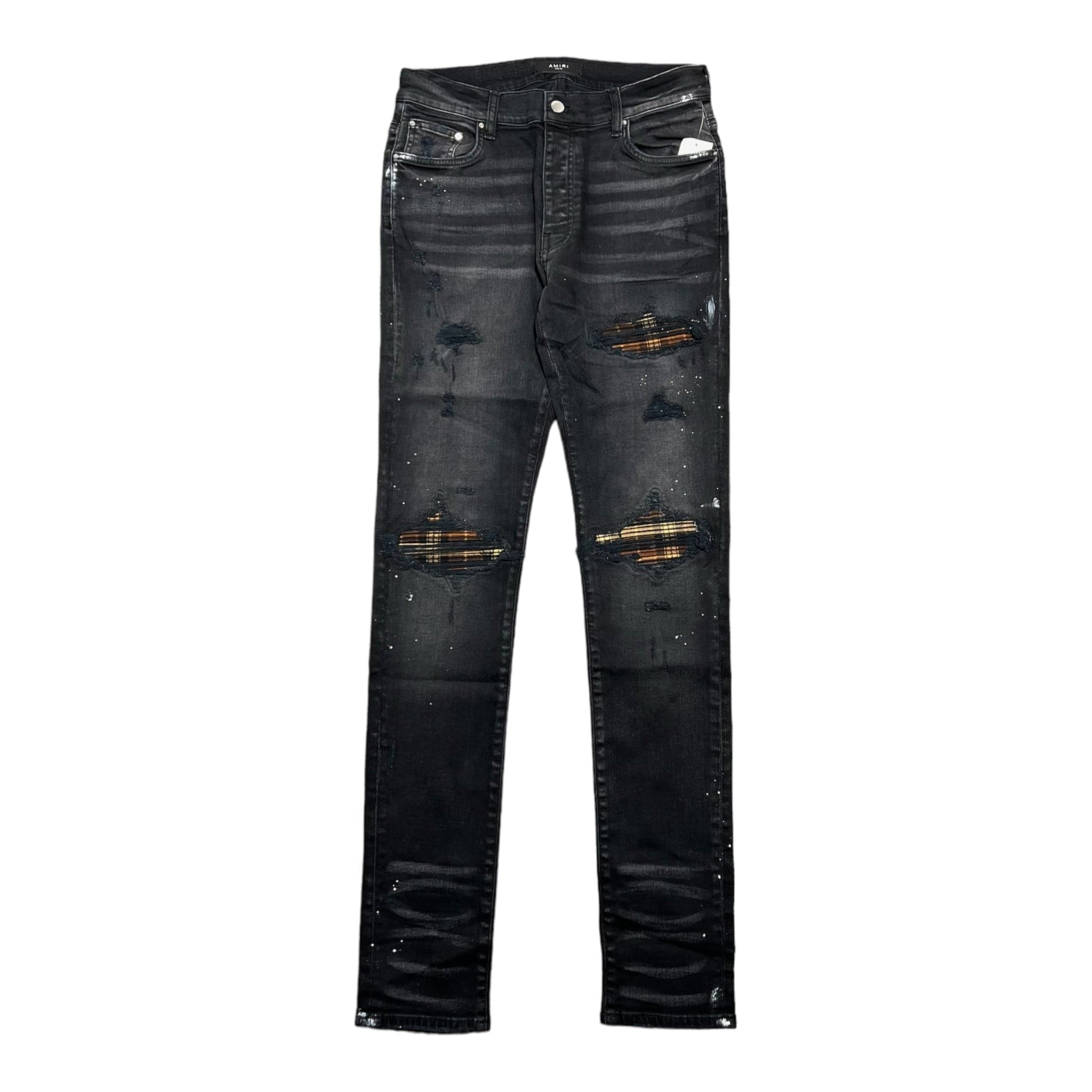 Amiri MX1 Plaid Patch Jeans Aged Black Brown Pre-Owned