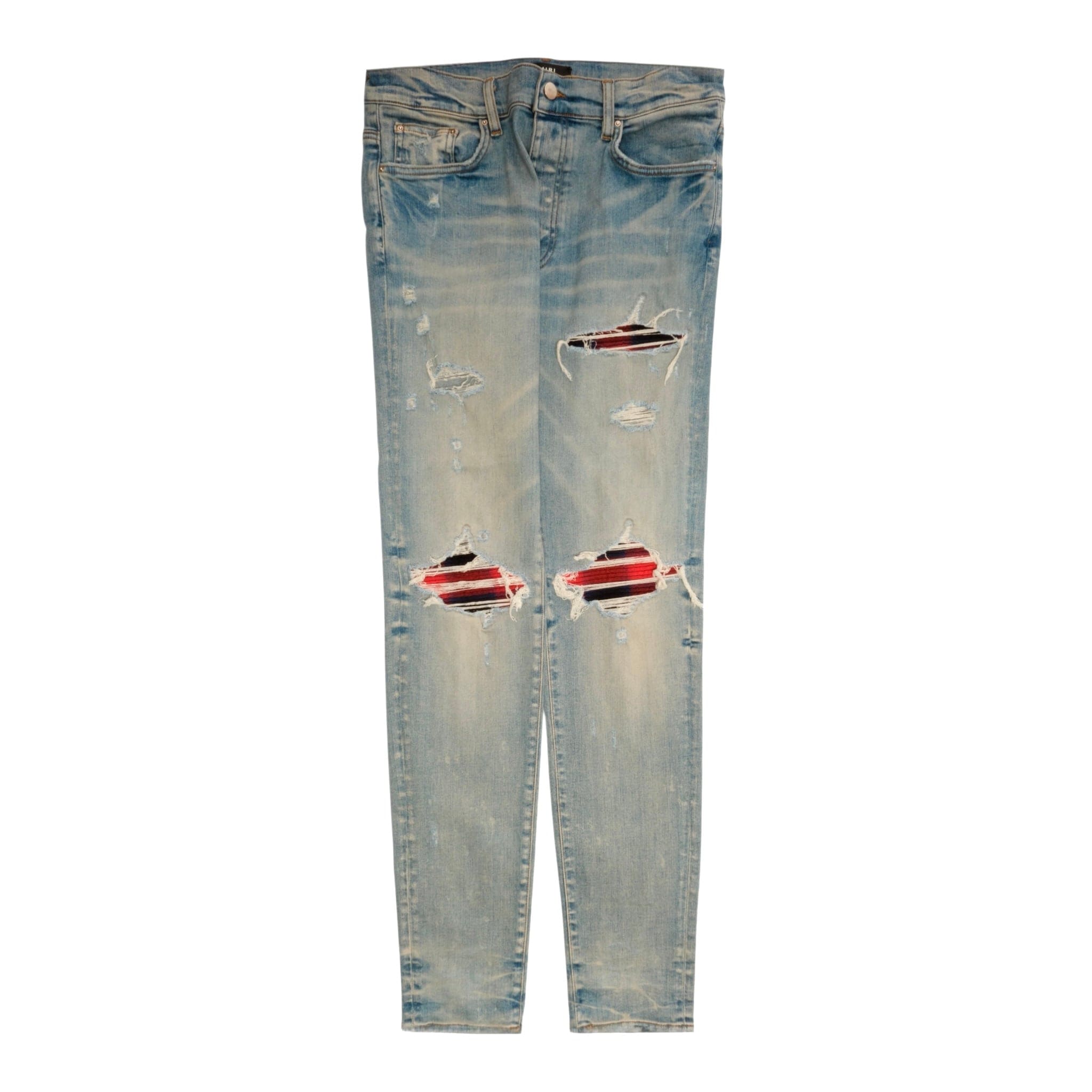 Amiri MX1 Plaid Patch Jeans Clay Indigo Red Multi Pre-Owned