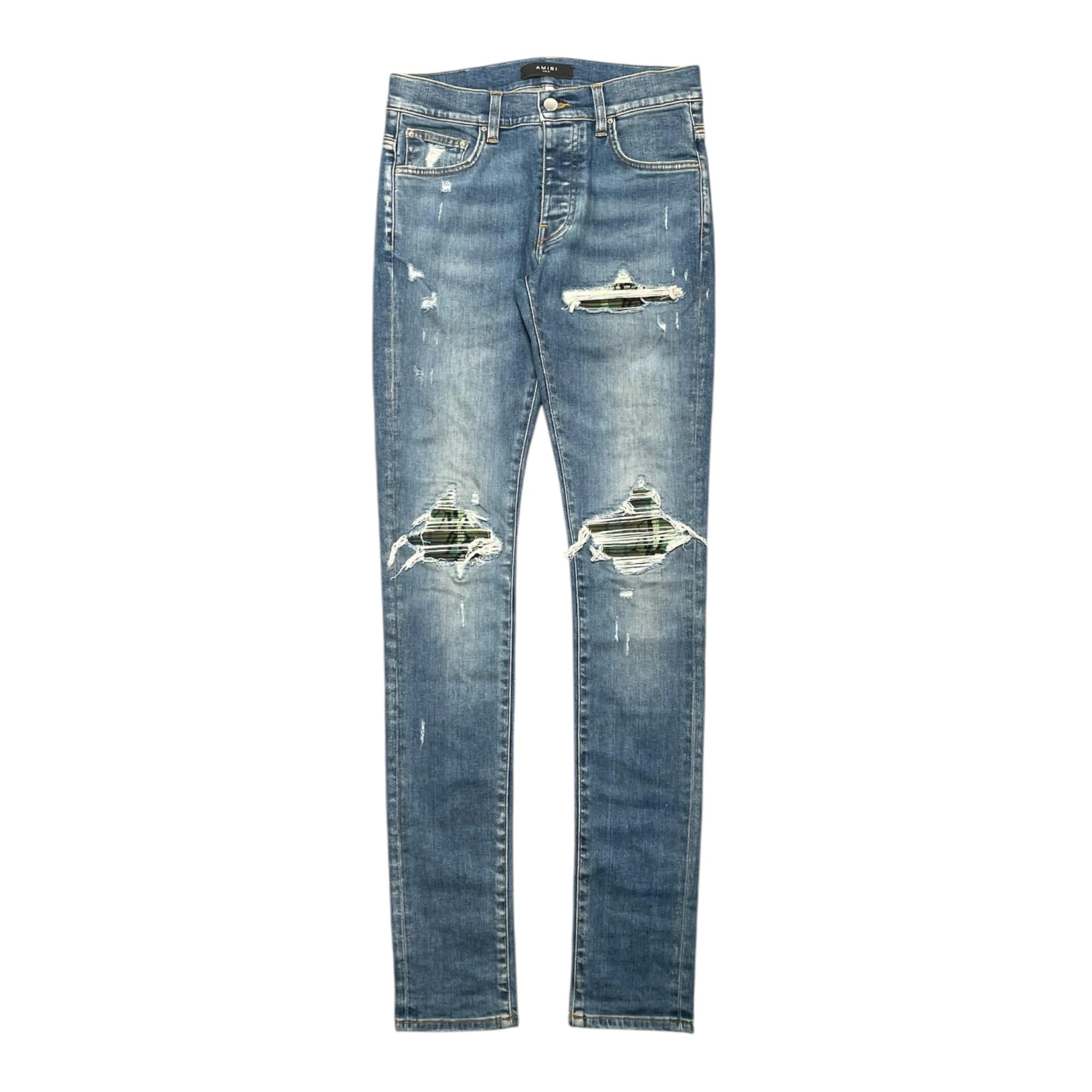 Amiri MX1 Plaid Patch Jeans Crafted Indigo Green Multi
