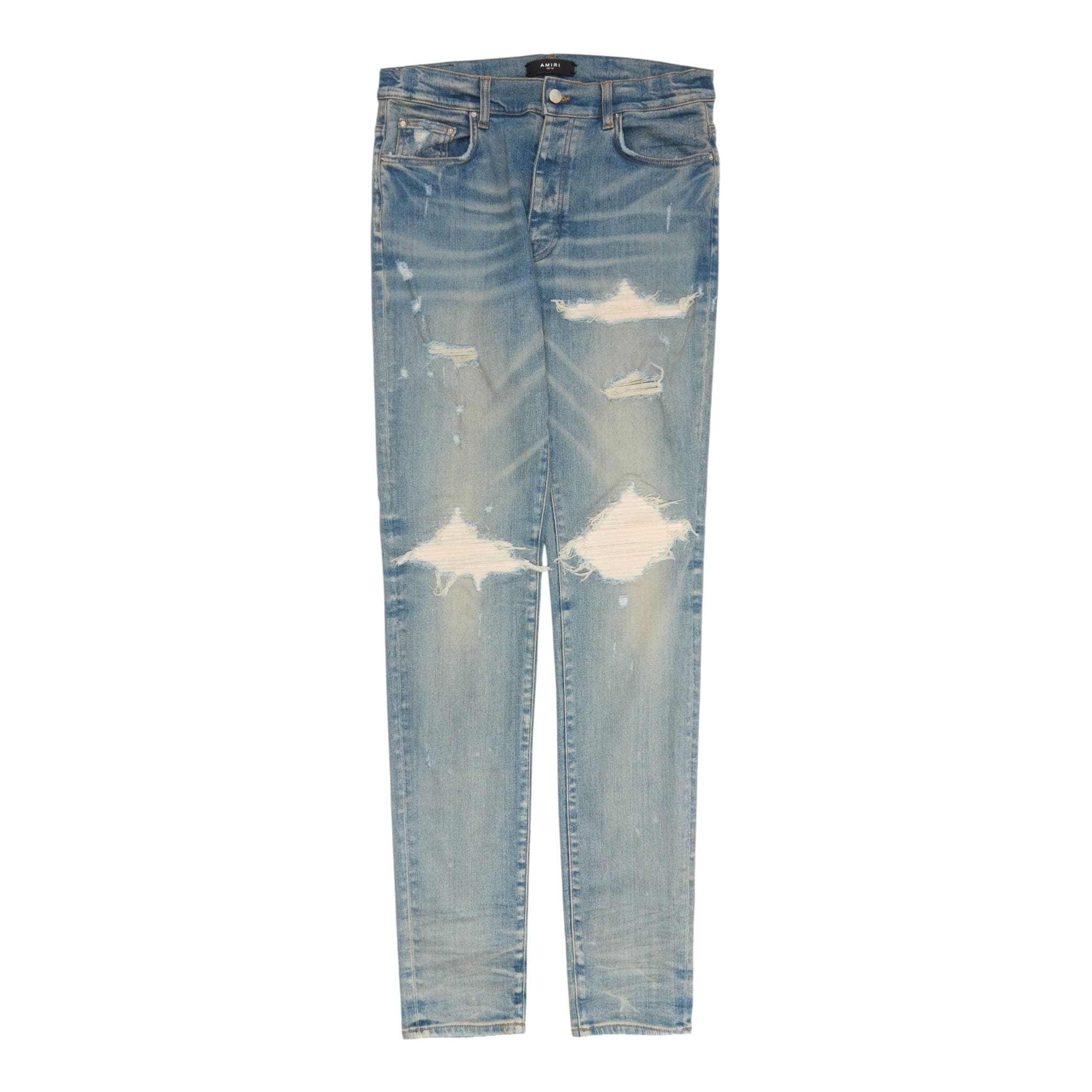 Amiri MX1 Suede Patch Jeans Clay Indigo White Pre-Owned