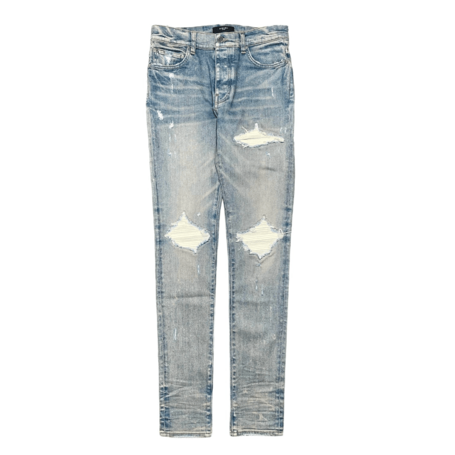 Amiri MX1 Suede Patch Jeans Clay Indigo White Pre-Owned