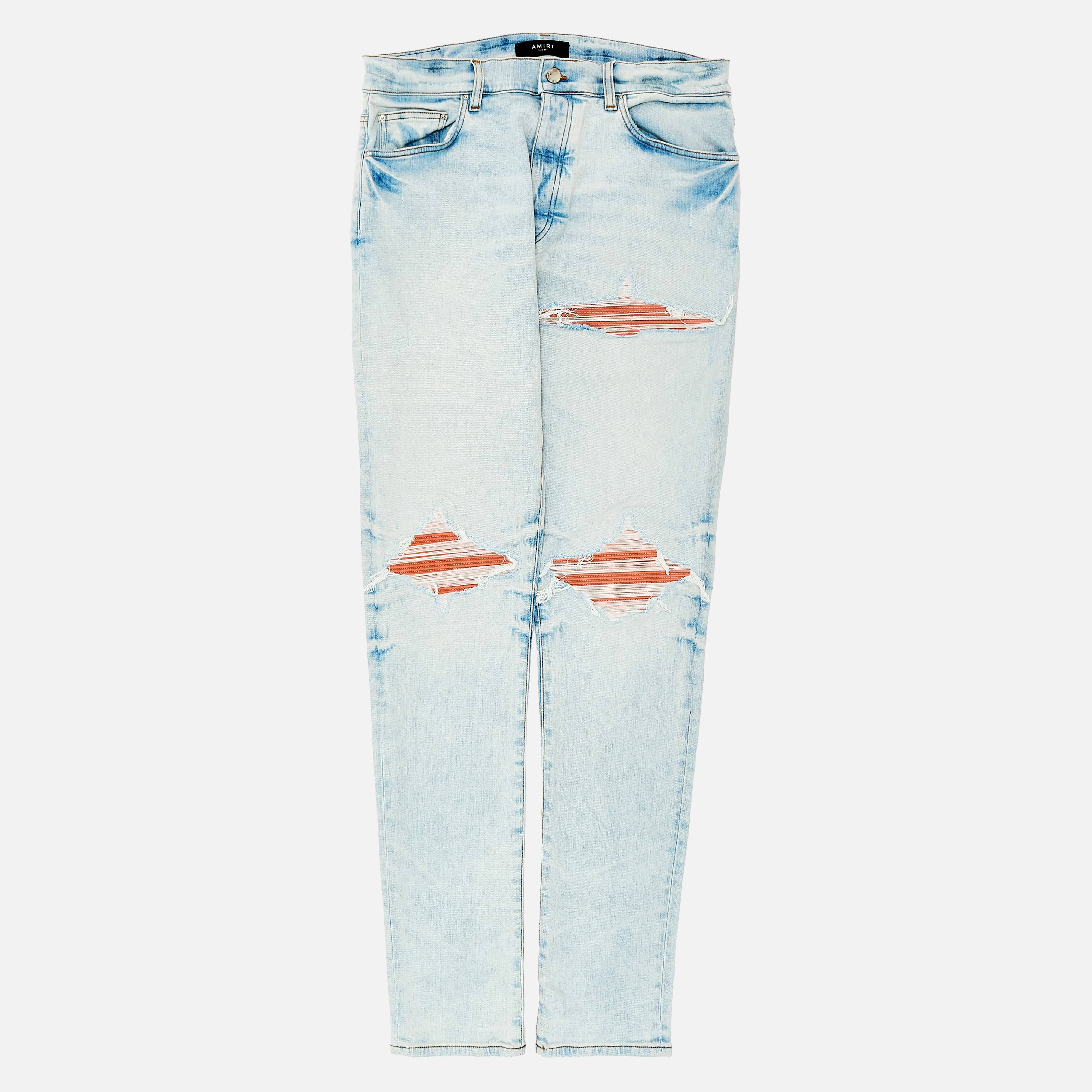 Amiri MX1 Ultrasuede Patch Jeans Medium Indigo Taupe