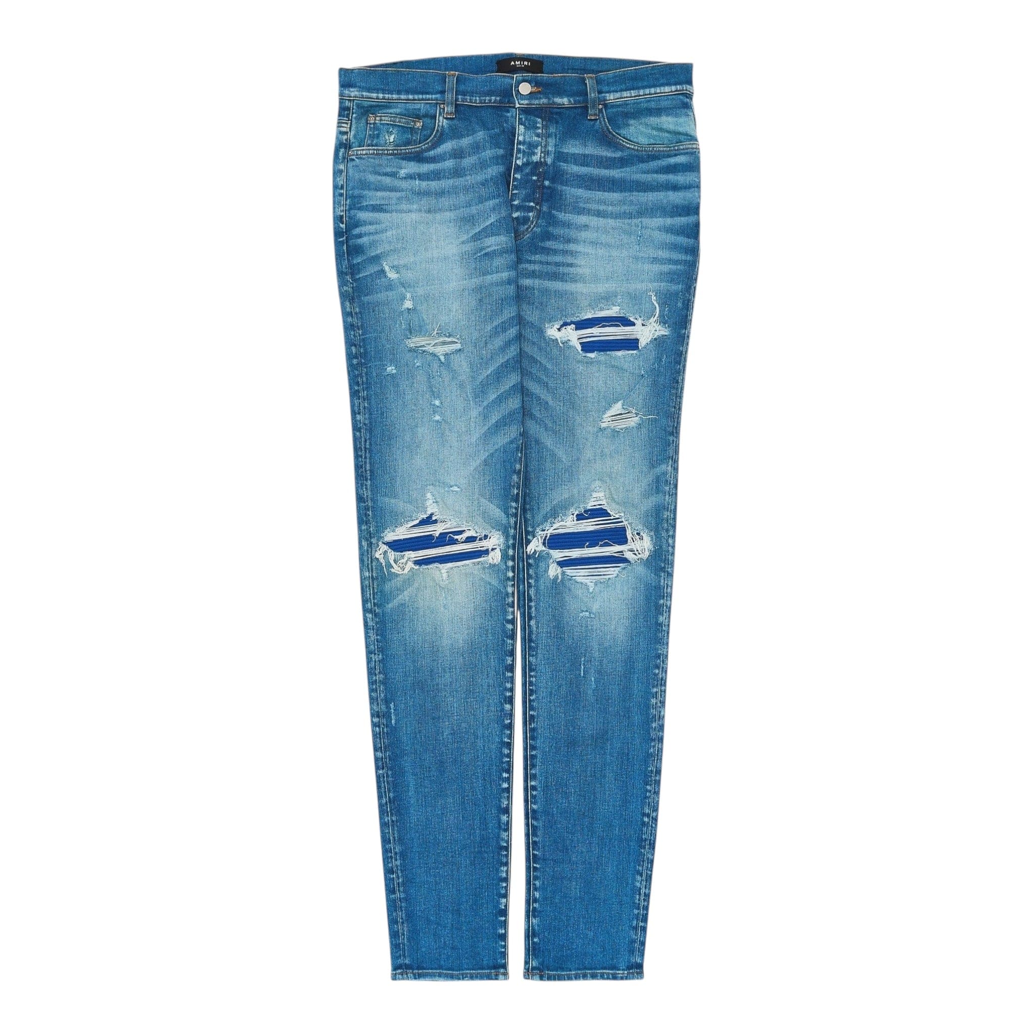 Amiri MX1 Ultrasuede Repair Jeans 70's Indigo Blue
