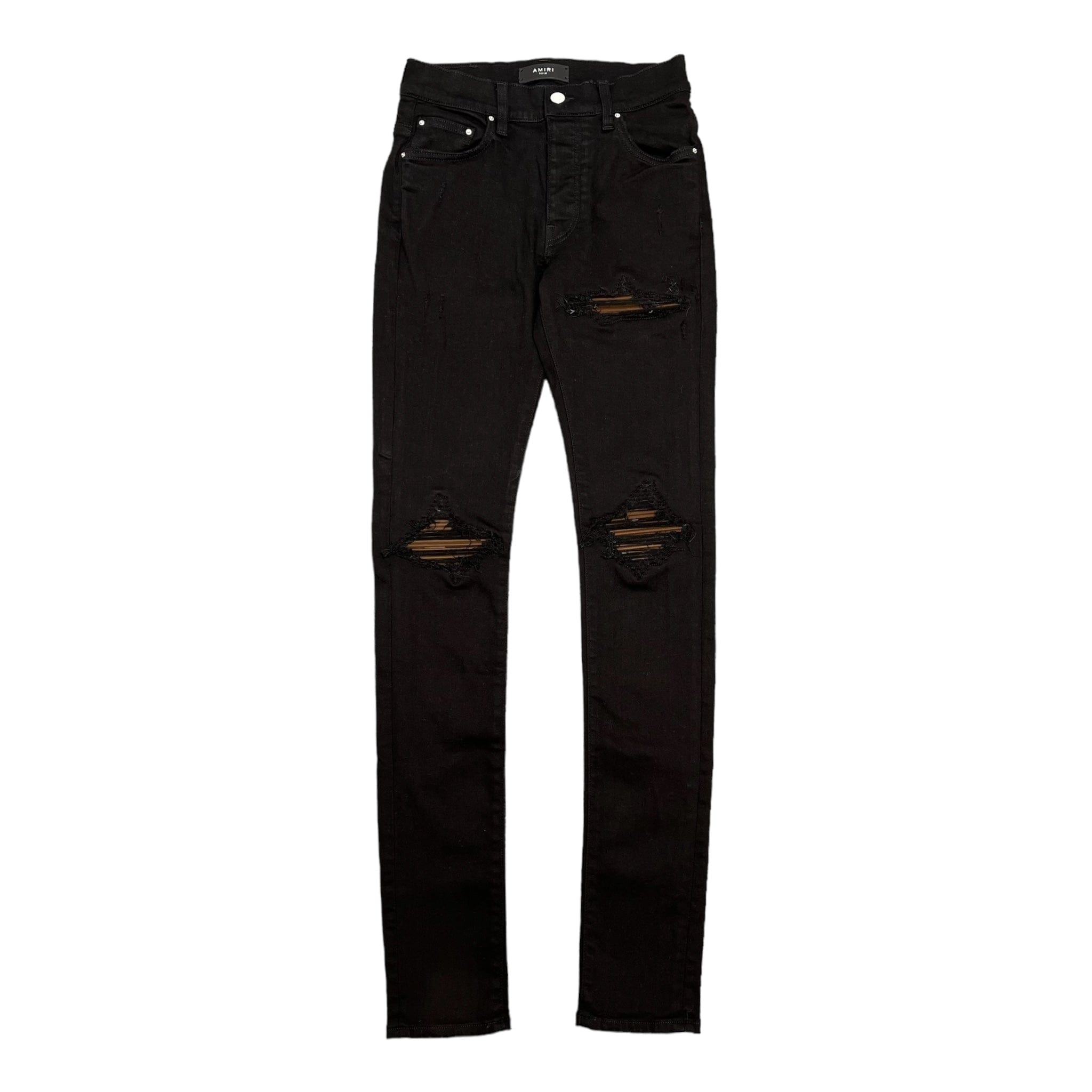 Amiri MX1 Ultrasuede Repair Jeans Black Brown Pre-Owned