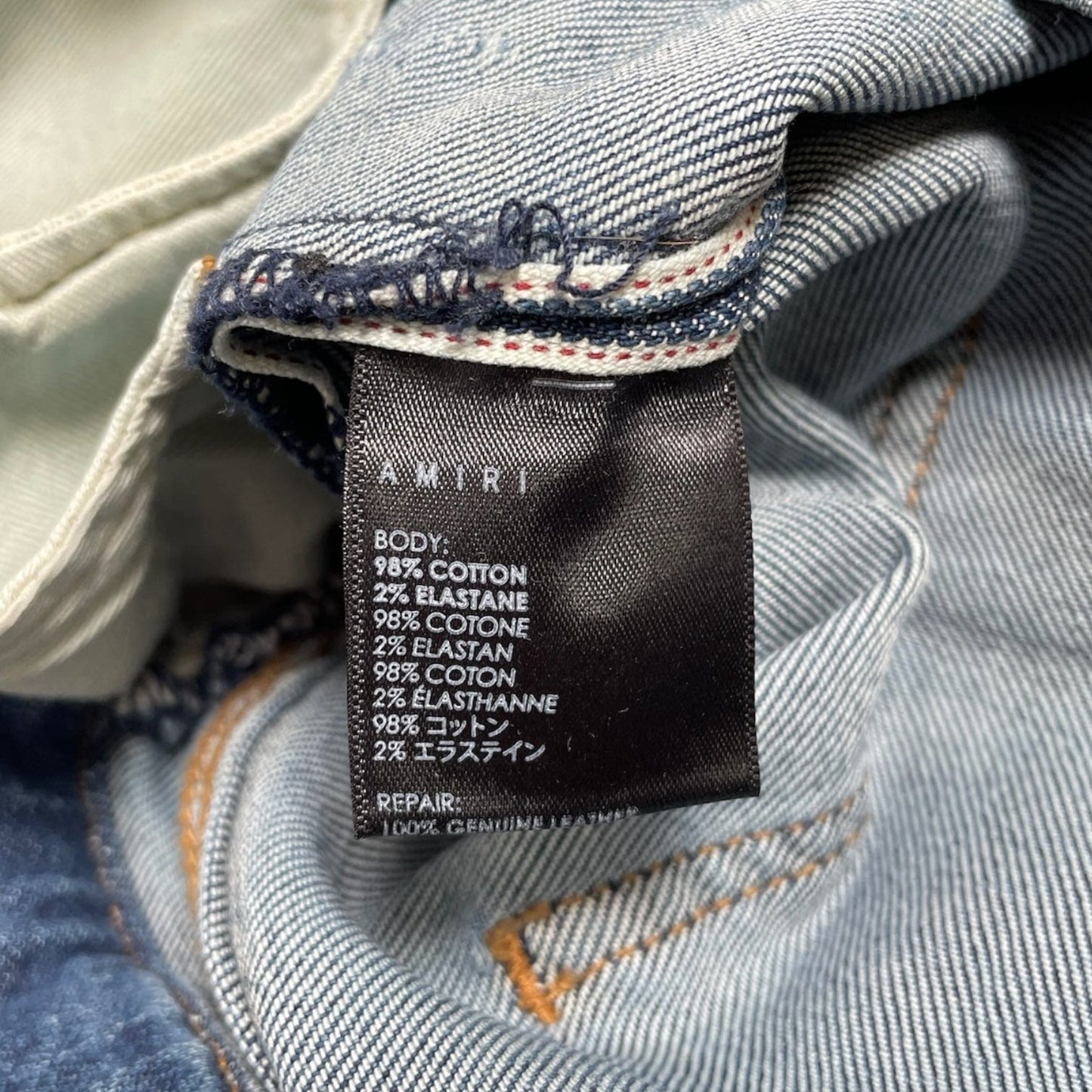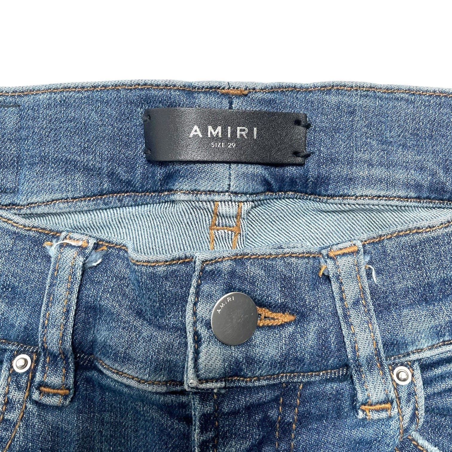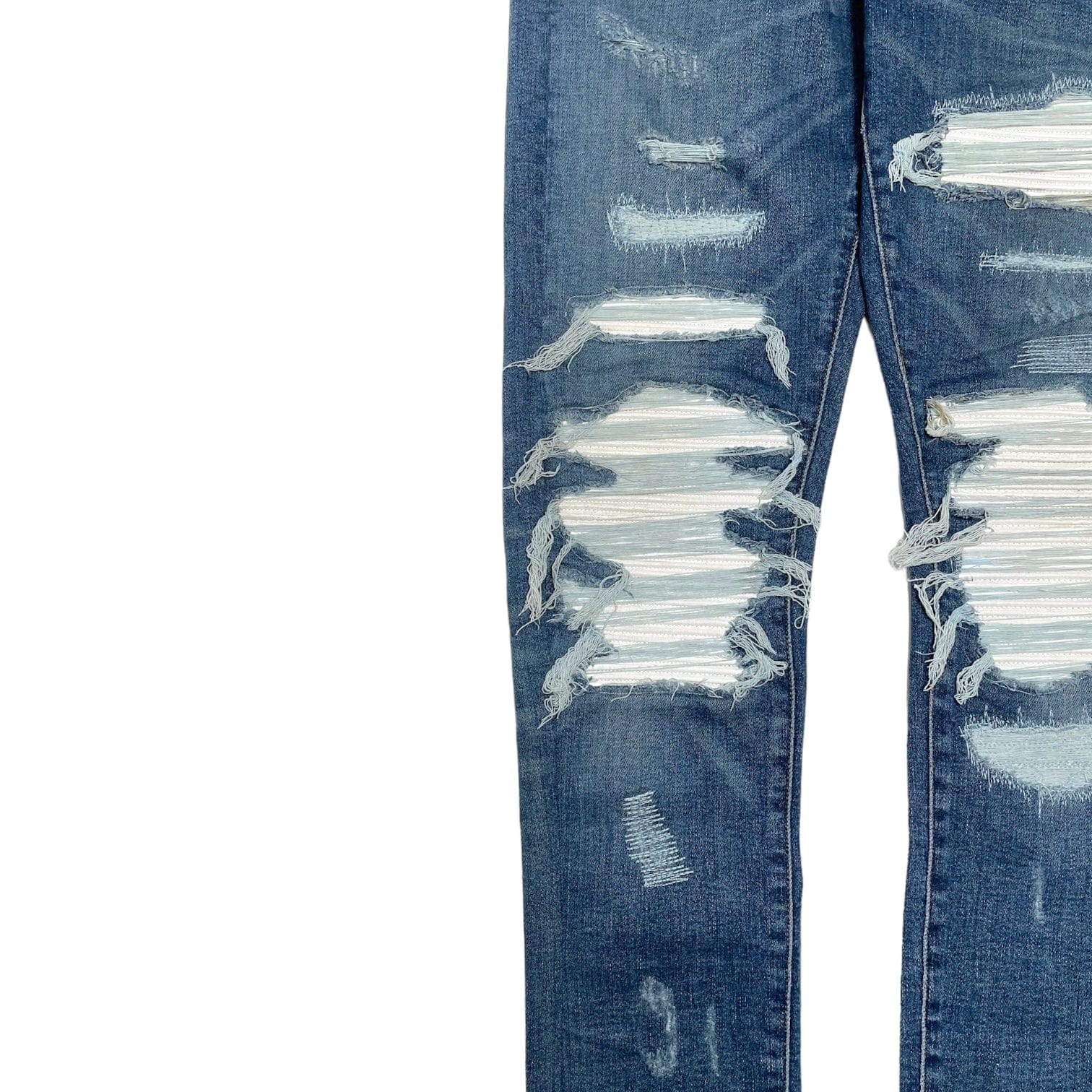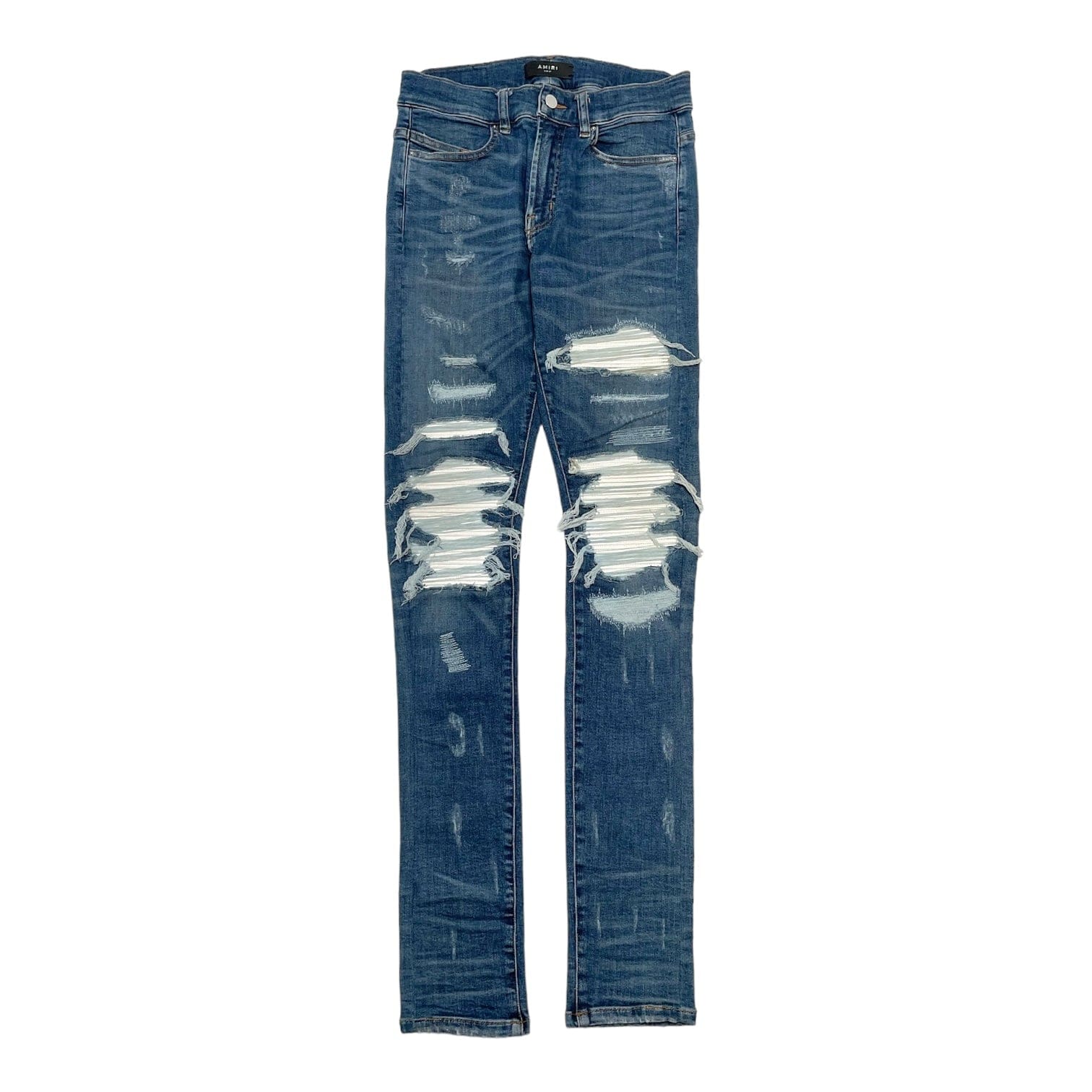 Amiri MX1 White Leather Patchwork Jeans Classic Indigo (2017)