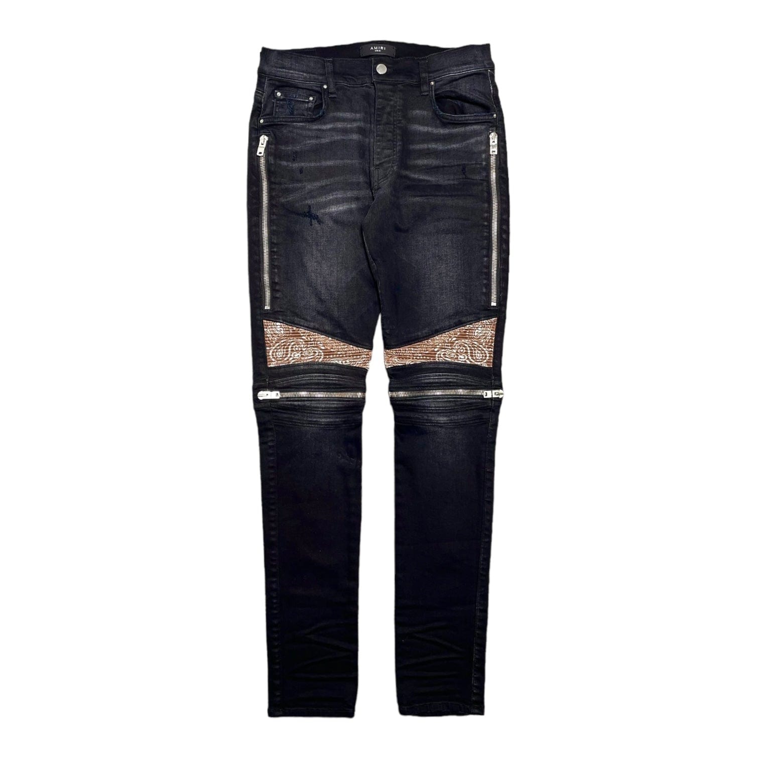 Amiri MX2 Brown Bandana Patch Jeans Antique Black